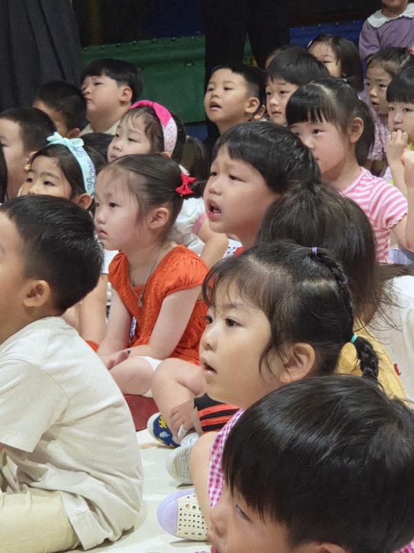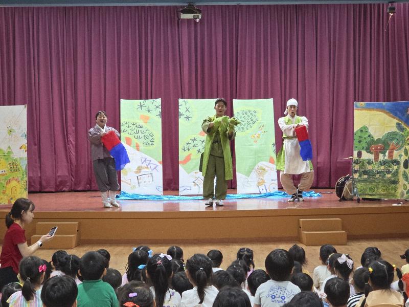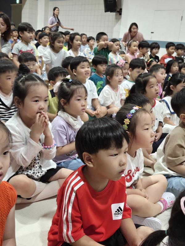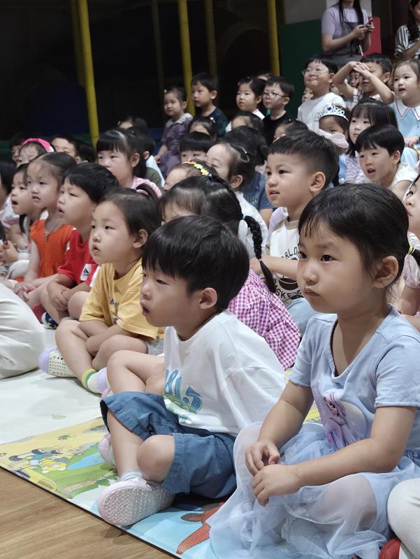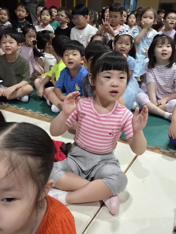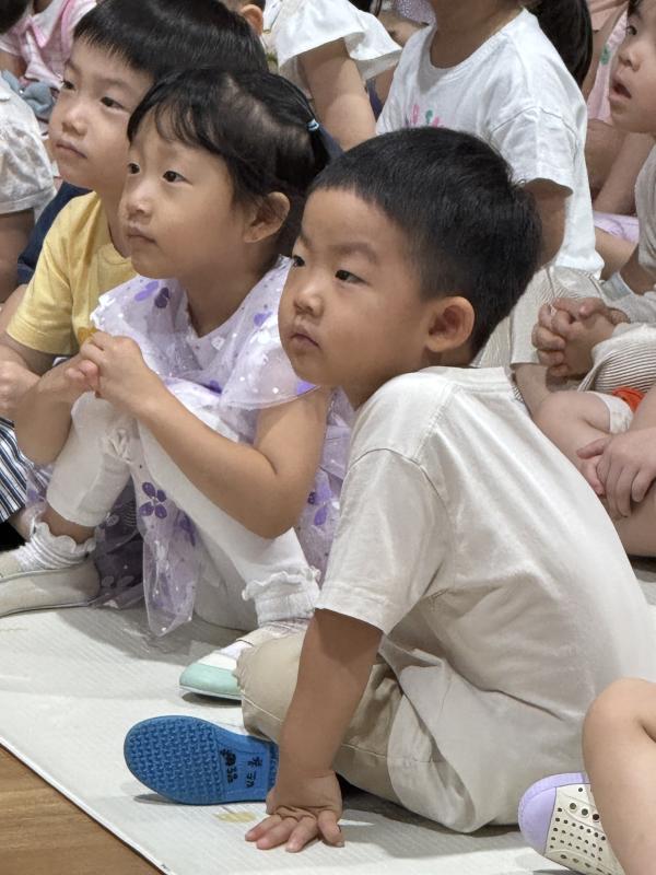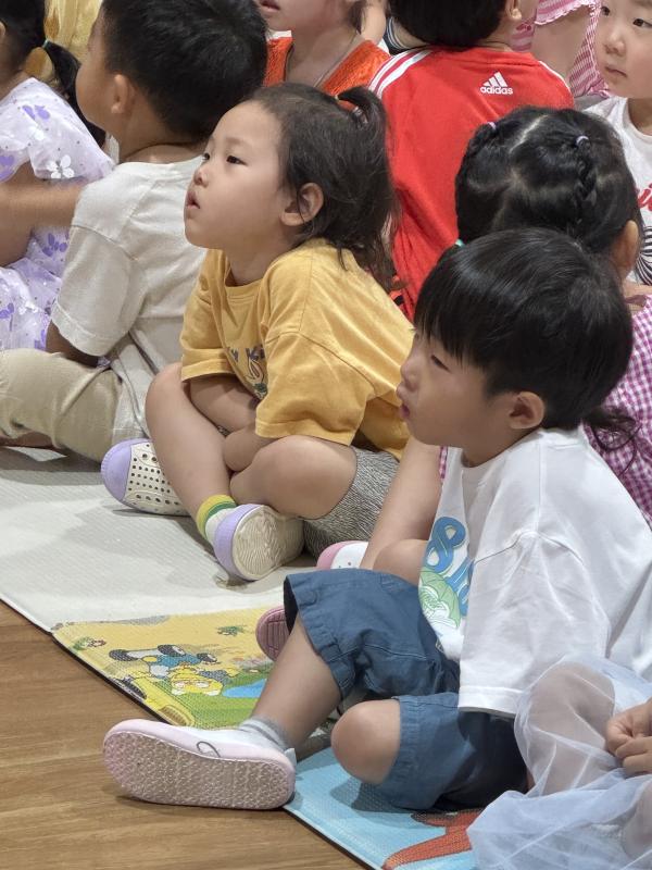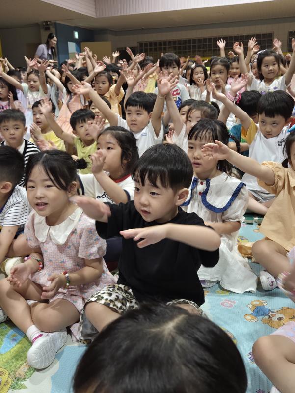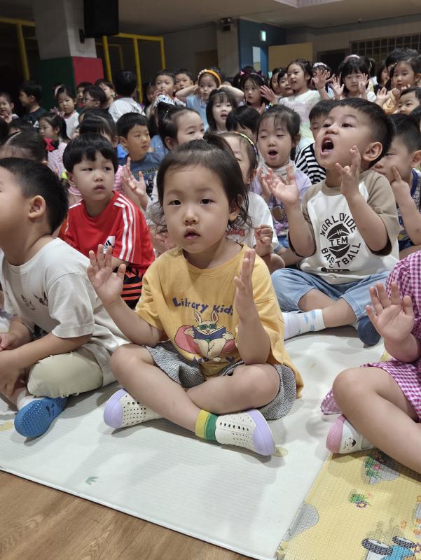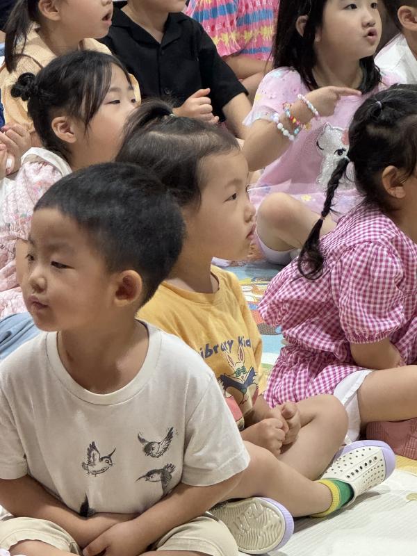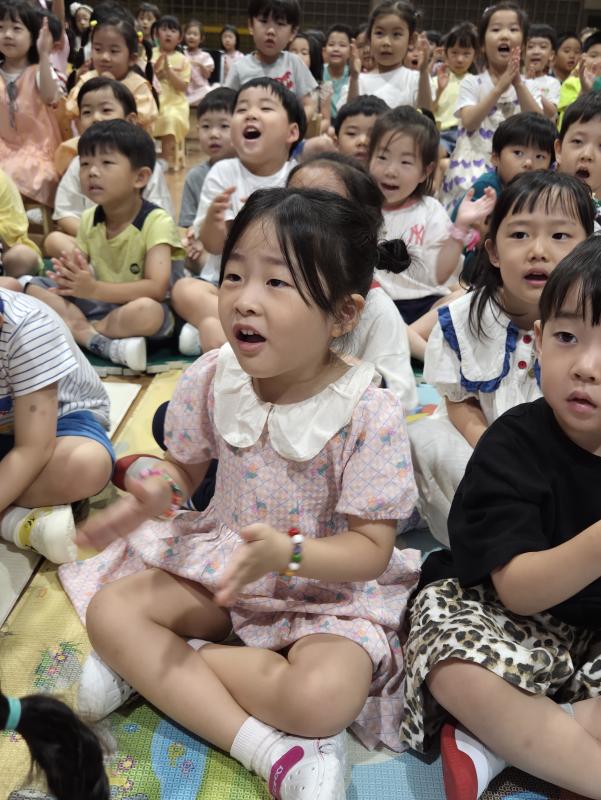 여름방학을 맞이하여 🍉🏖️🏕️우리나라 전래동화‘청개구리전’을🐸전래동요, 장단, 춤사위 등 흥겨운 장단 놀이극으로 각색한 뮤지컬 공연을 보며신명나는 북 장단에 맞춰 박수도 치고 신나게 웃으며문화 예술 경험을 하며 즐거움이 가득 했었답니다. 더 나아가 엄마 말씀을 안 듣고 거꾸로 하는 청개구리에게 “그러면 안돼”하고 우리 친구들이 알려주며부모님 말씀을 더욱 잘 듣고 효도하는 마음을 배워 볼 수 있었던 유익한 시간이었습니다.💛🧡❤️