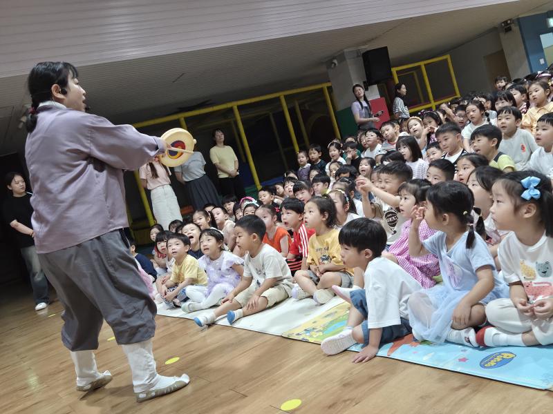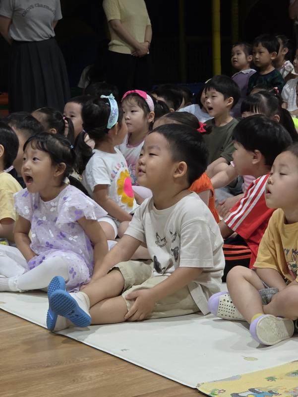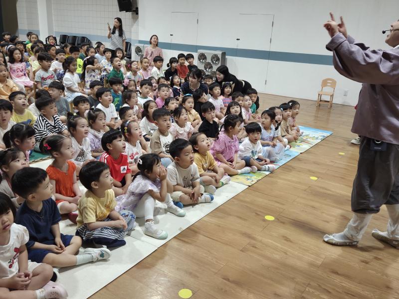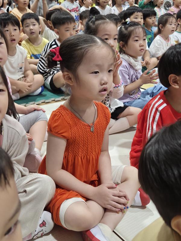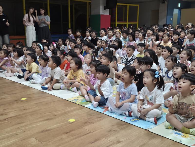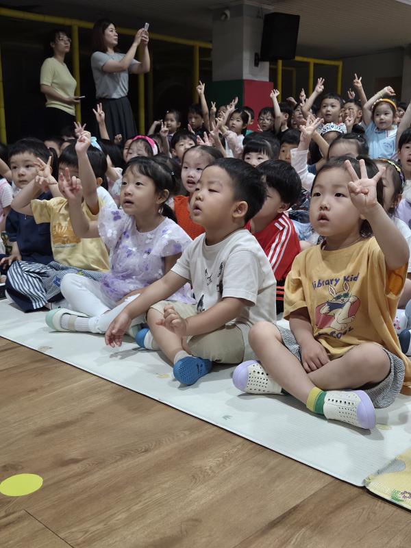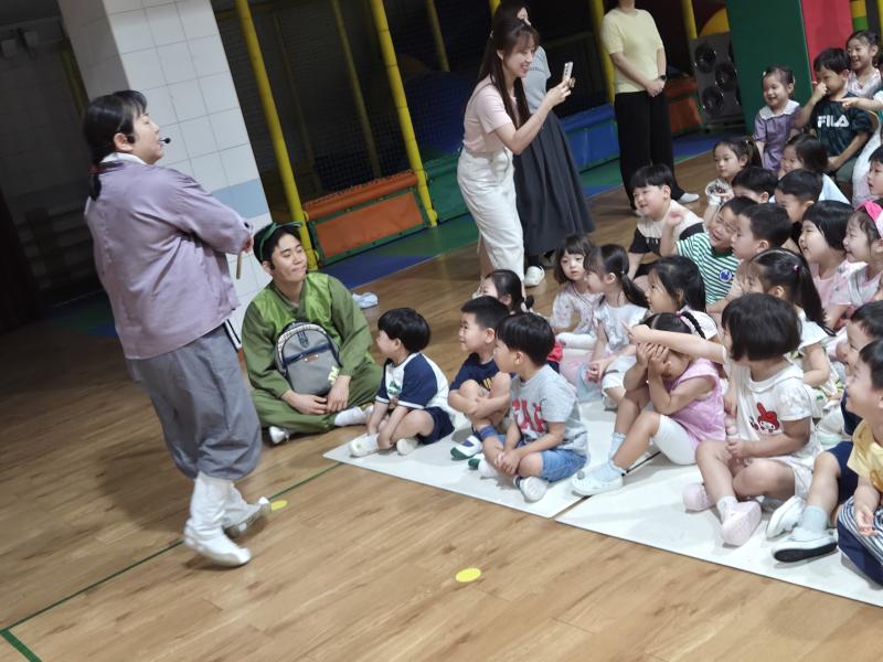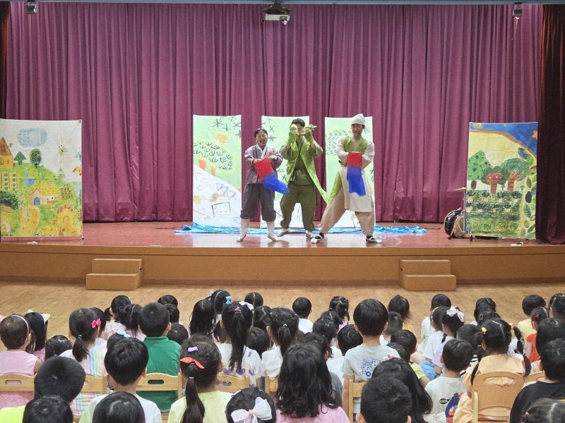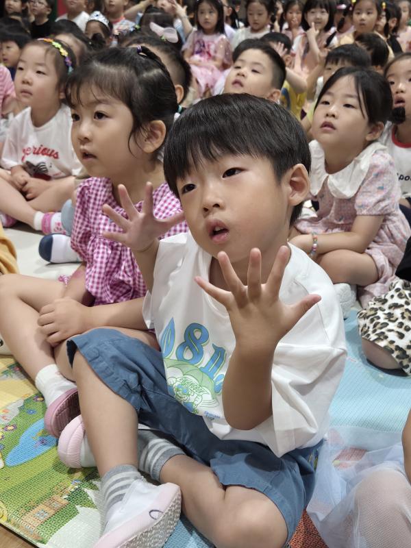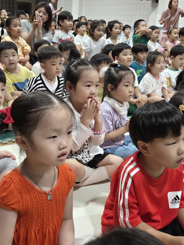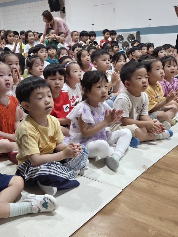 여름방학을 맞이하여 🍉🏖️🏕️우리나라 전래동화‘청개구리전’을🐸전래동요, 장단, 춤사위 등 흥겨운 장단 놀이극으로 각색한 뮤지컬 공연을 보며신명나는 북 장단에 맞춰 박수도 치고 신나게 웃으며문화 예술 경험을 하며 즐거움이 가득 했었답니다. 더 나아가 엄마 말씀을 안 듣고 거꾸로 하는 청개구리에게 “그러면 안돼”하고 우리 친구들이 알려주며부모님 말씀을 더욱 잘 듣고 효도하는 마음을 배워 볼 수 있었던 유익한 시간이었습니다.💛🧡❤️