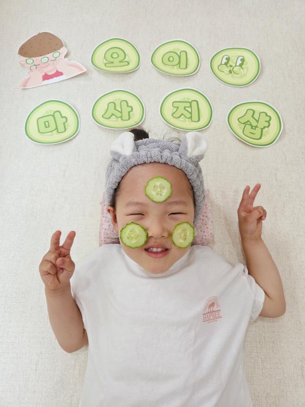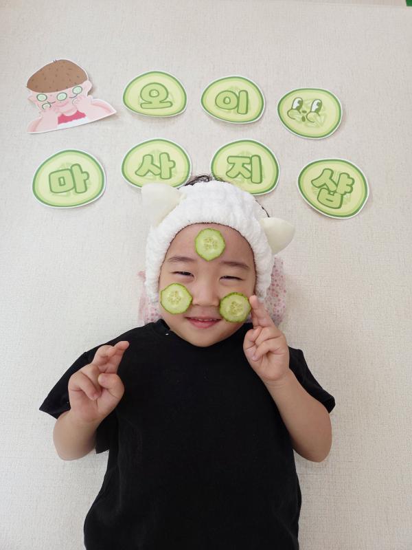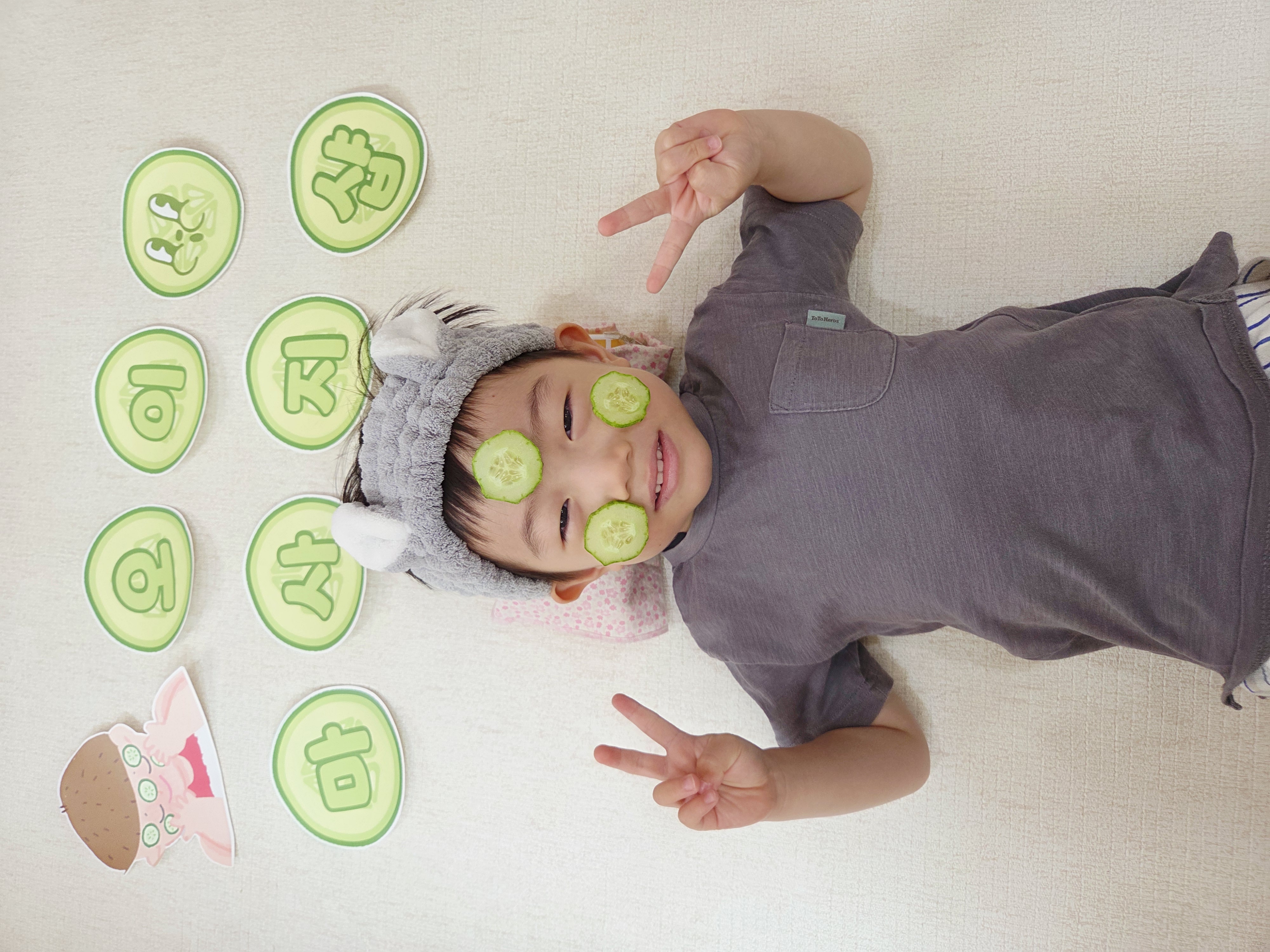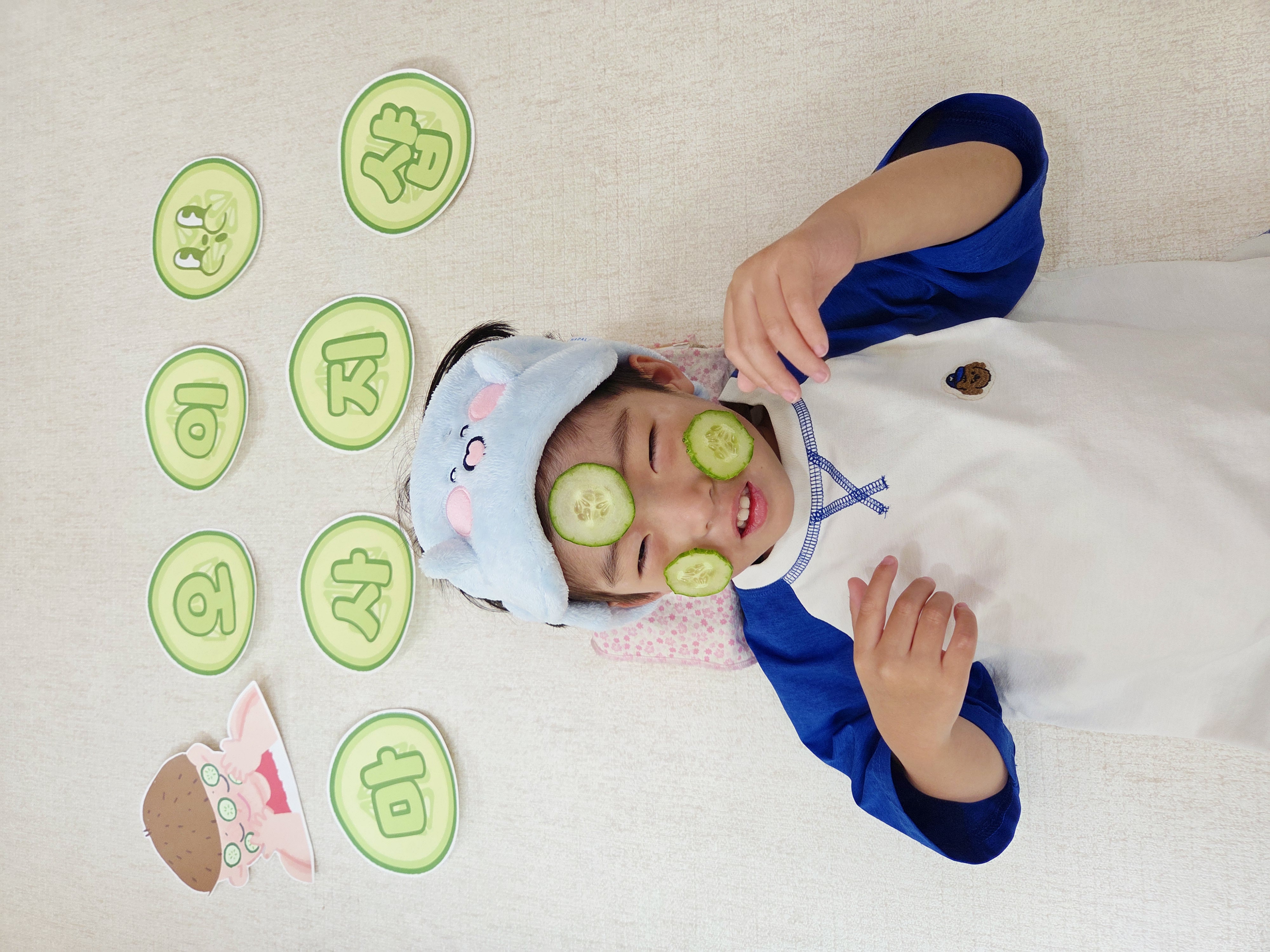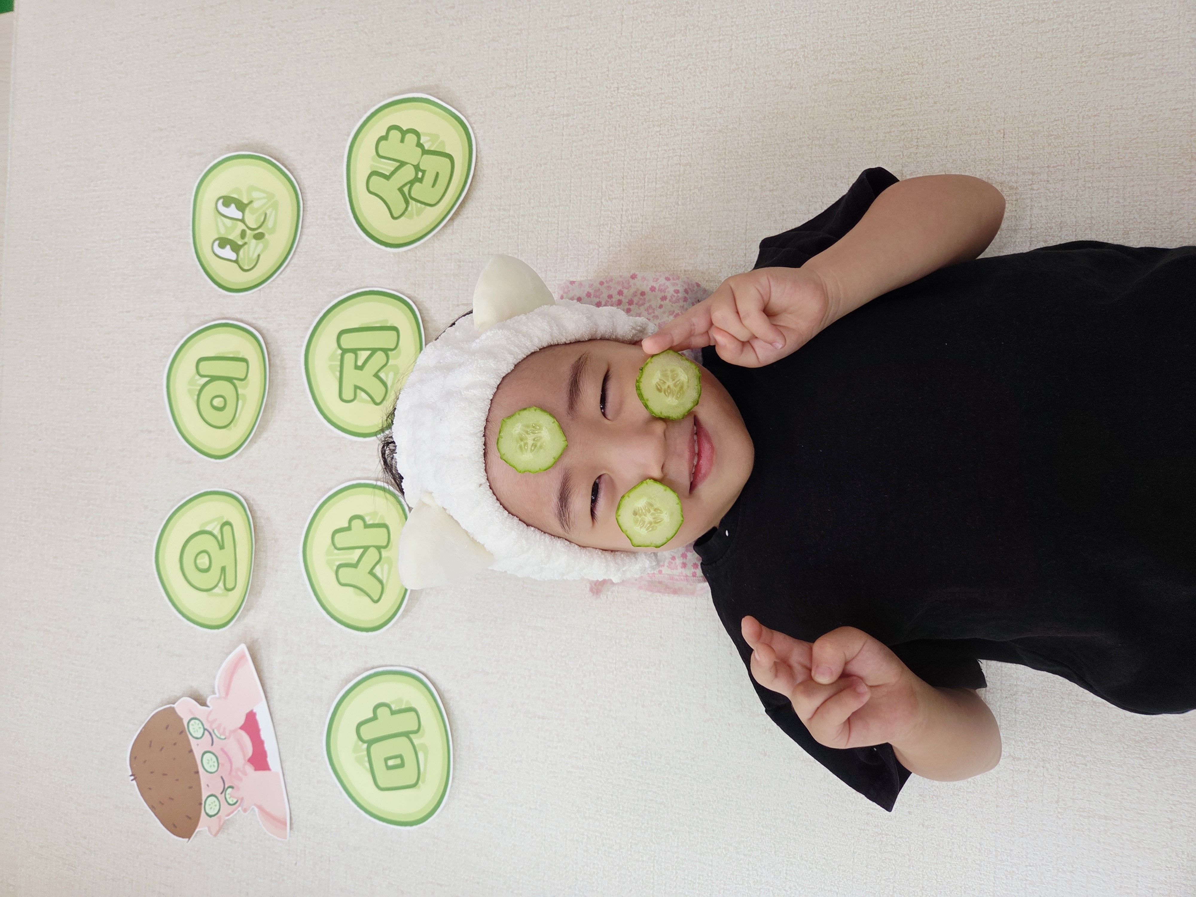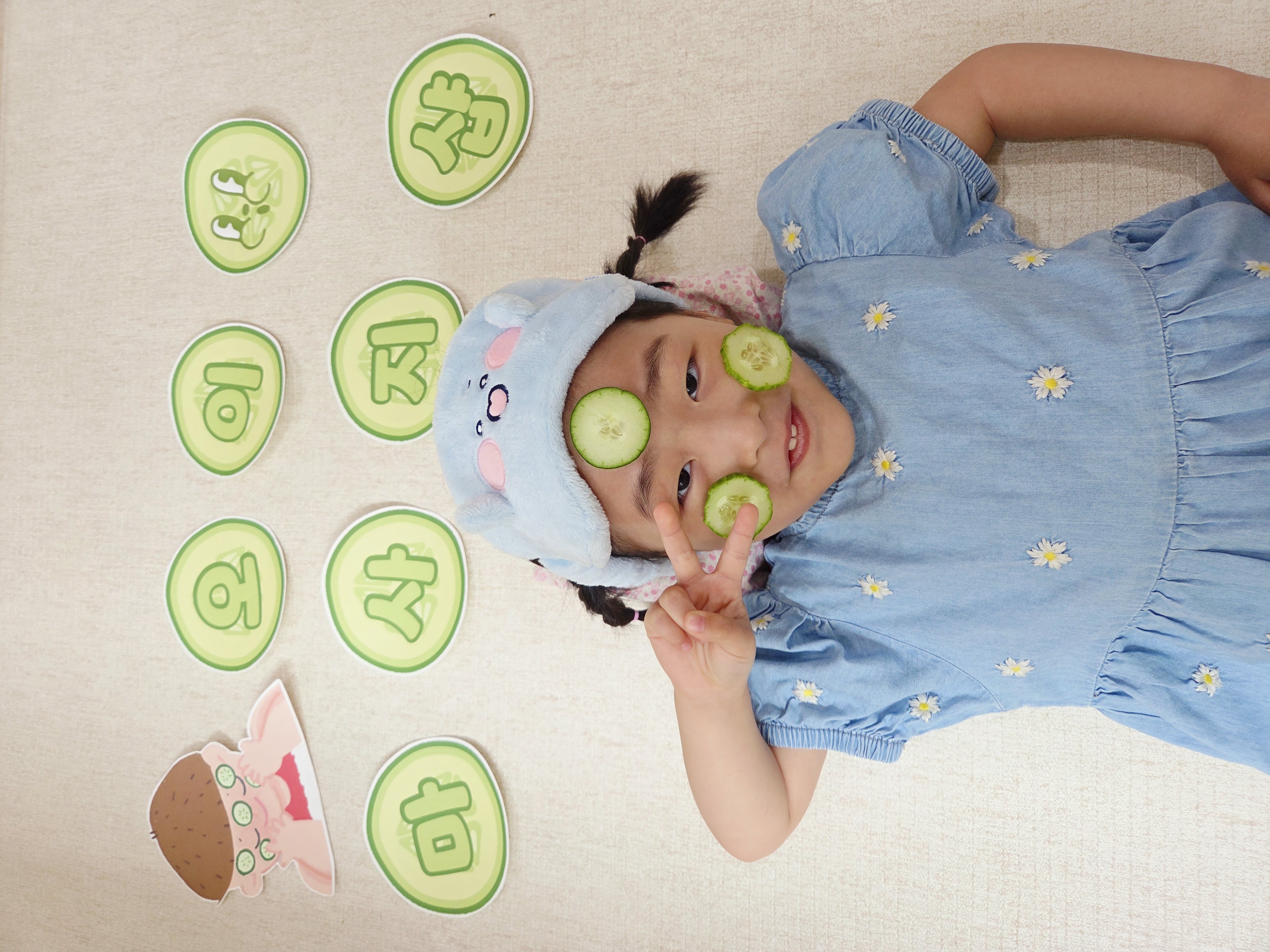 아삭아삭 길쭉하고 날씬한 오이를🥒오감으로 탐색하고 오이& 참치 샌드위치 요리도 하고🥪🌮🌯‘장수탕 선녀님’ 동화를 듣고 상상블록으로 목욕탕 놀이도하고 오이 마사지 놀이도 하며 어느새 피부가 매끈매끈 우유 빛깔로 변신^^친구들과의 사랑도 쑥쑥~*^^*