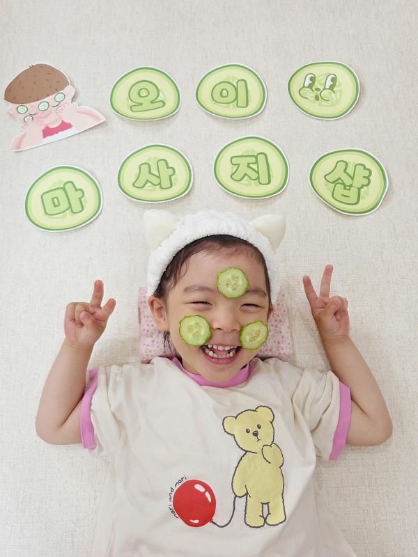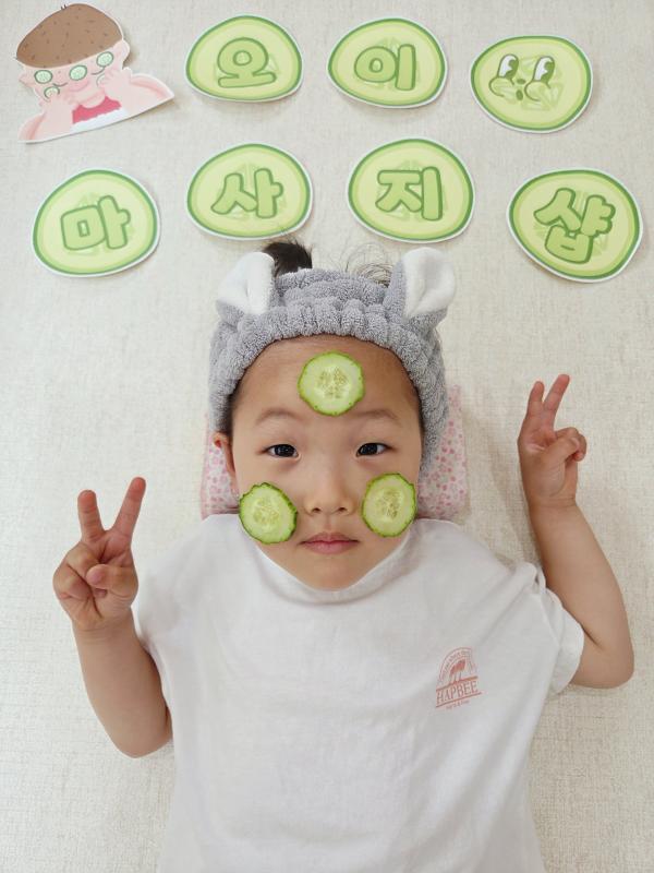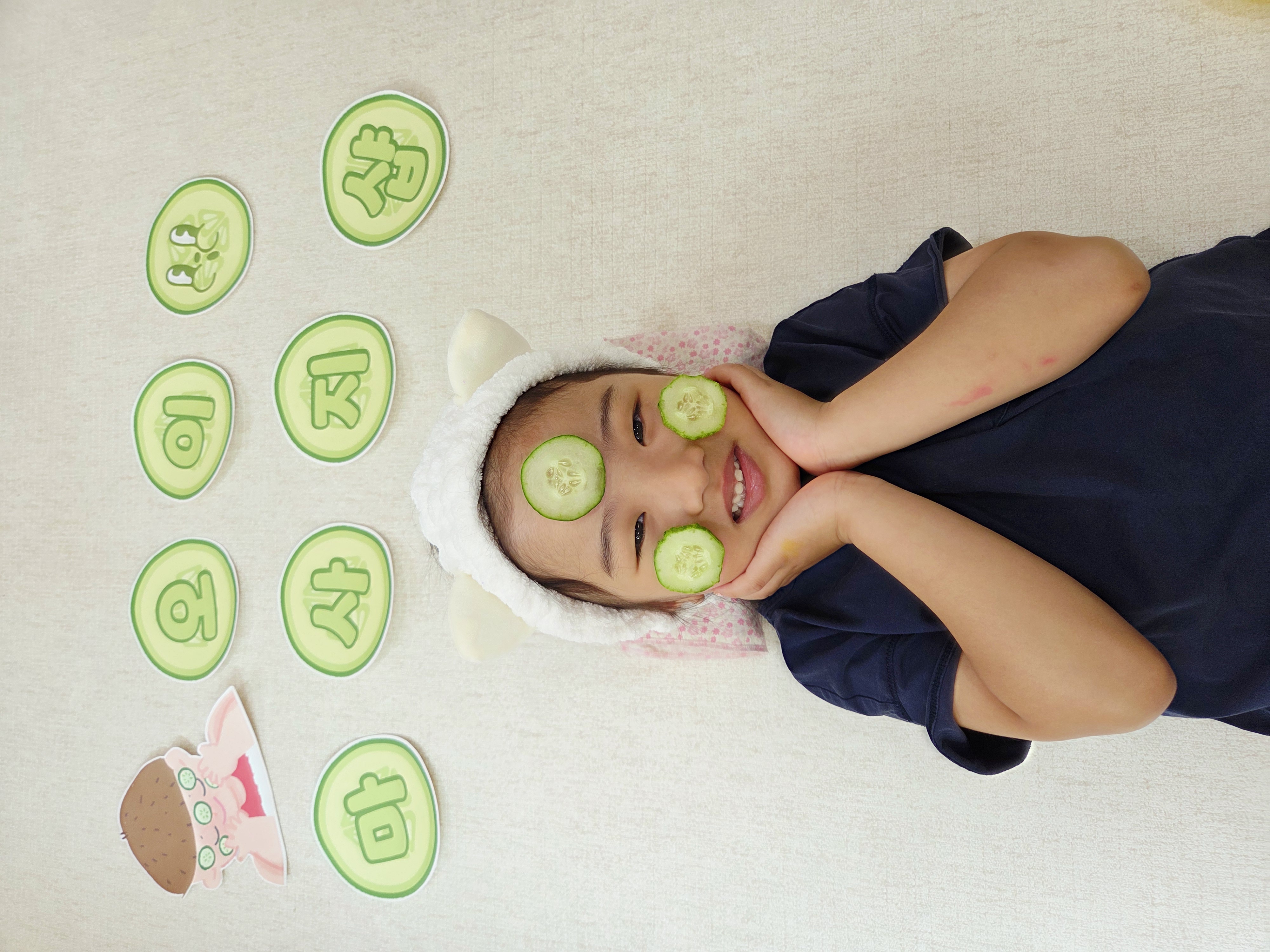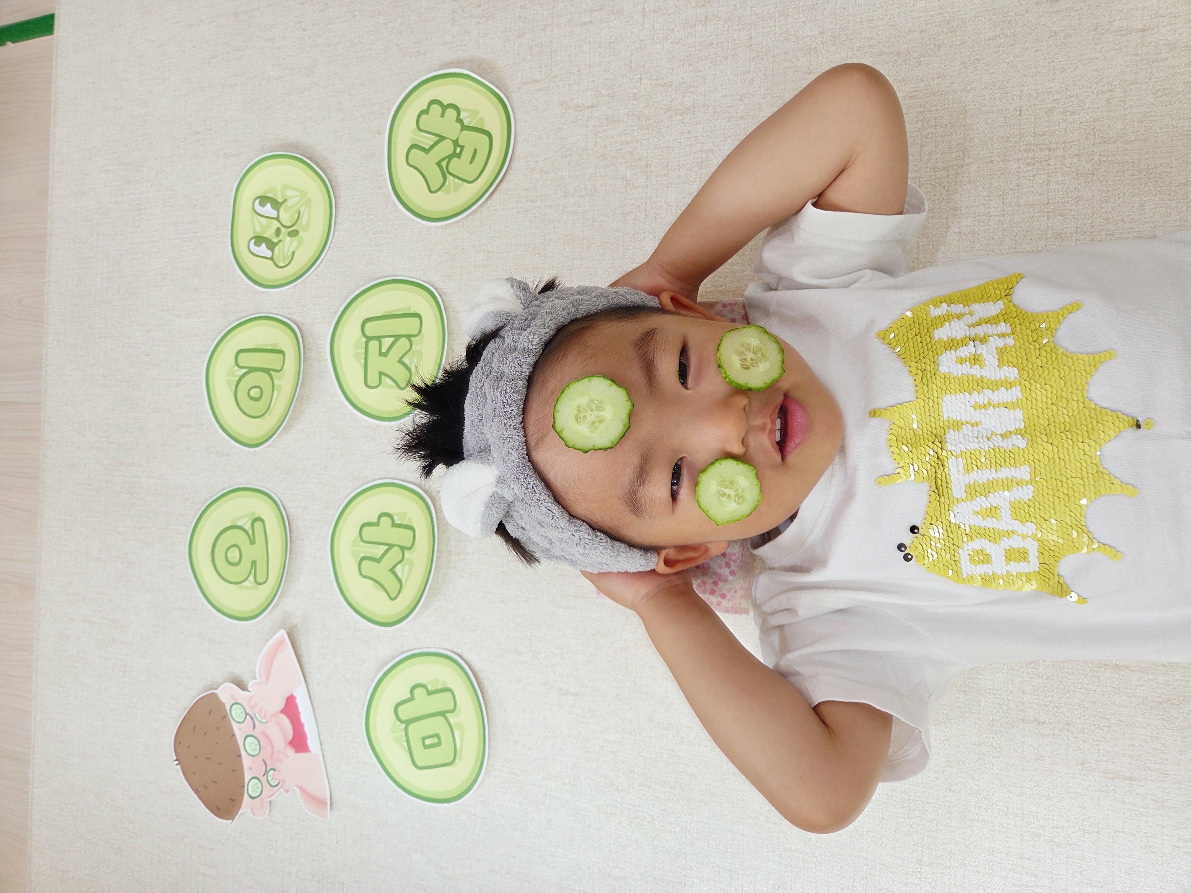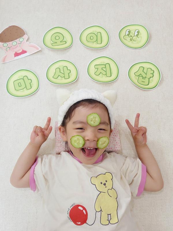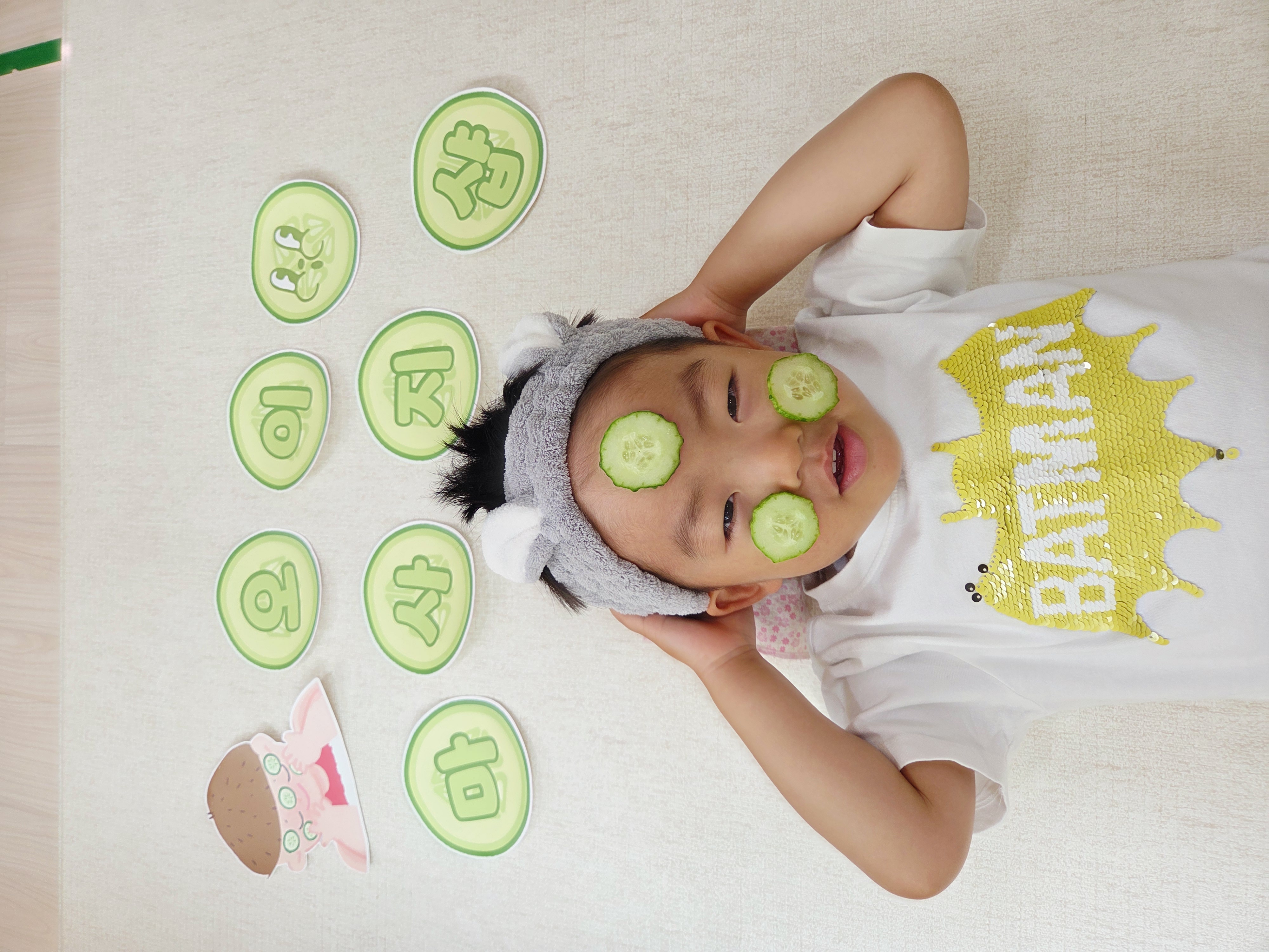 아삭아삭 길쭉하고 날씬한 오이를🥒오감으로 탐색하고 오이& 참치 샌드위치 요리도 하고🥪🌮🌯‘장수탕 선녀님’ 동화를 듣고 상상블록으로 목욕탕 놀이도하고 오이 마사지 놀이도 하며 어느새 피부가 매끈매끈 우유 빛깔로 변신^^친구들과의 사랑도 쑥쑥~*^^*