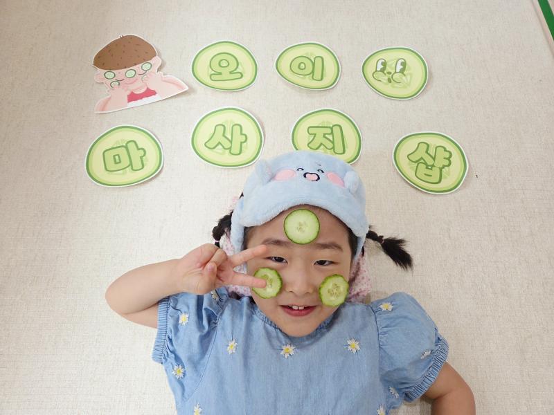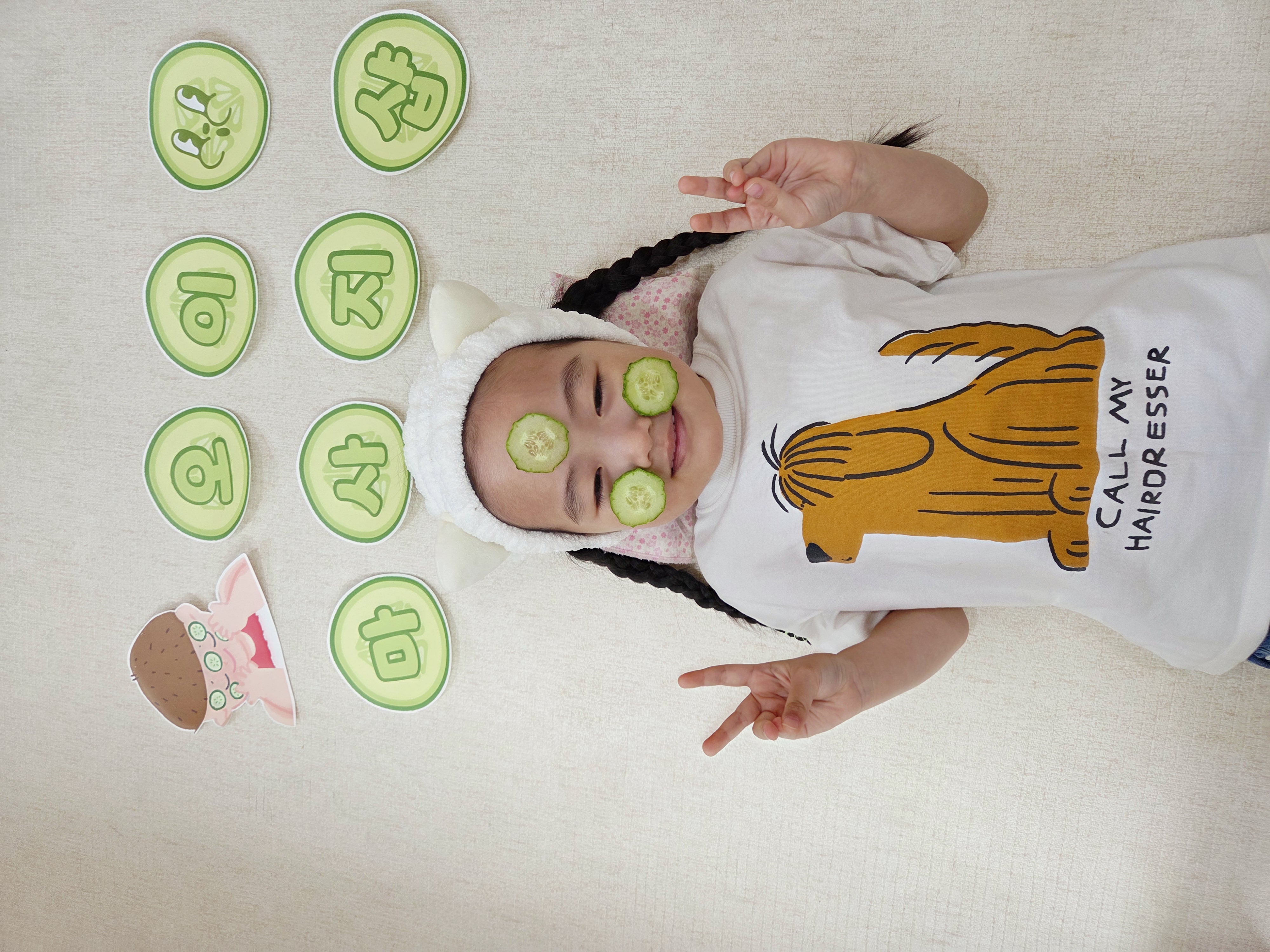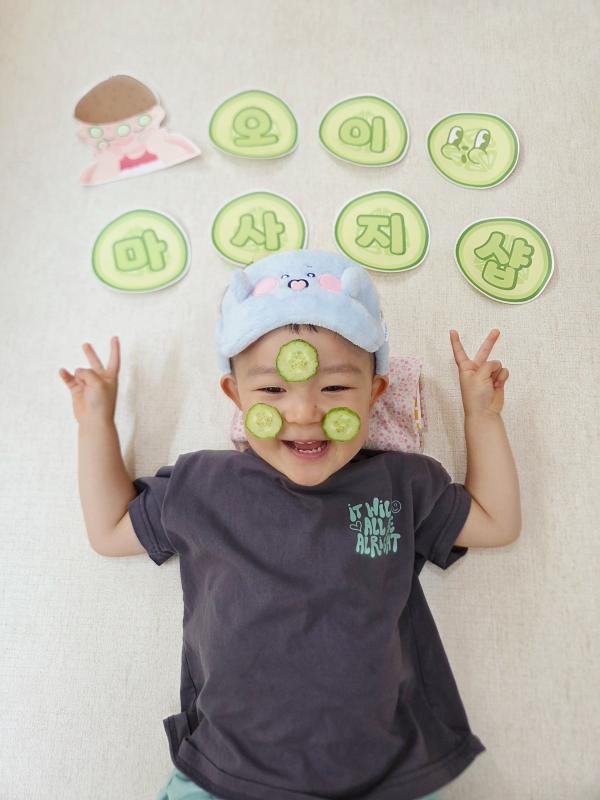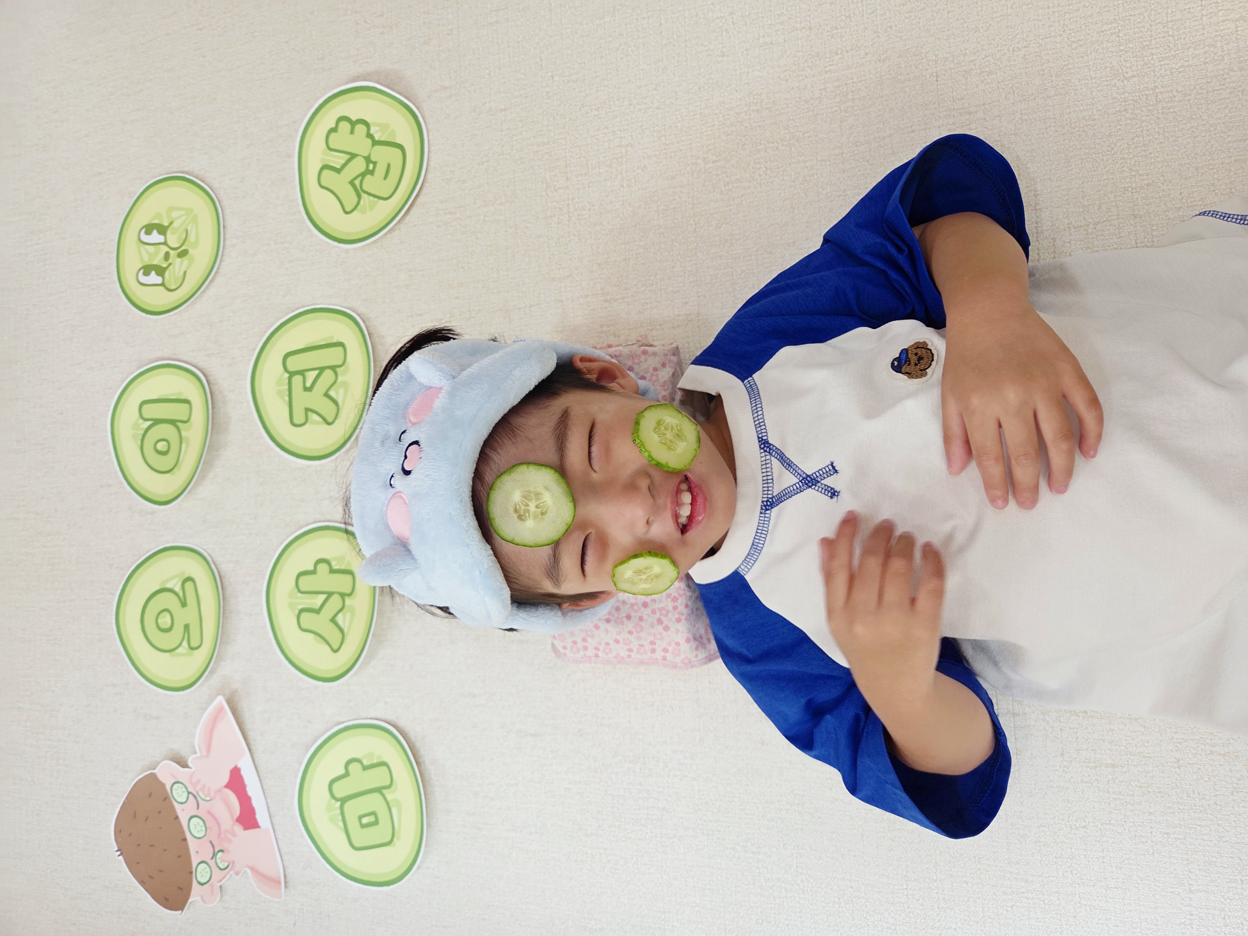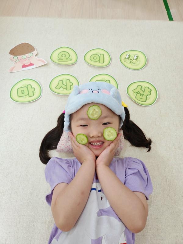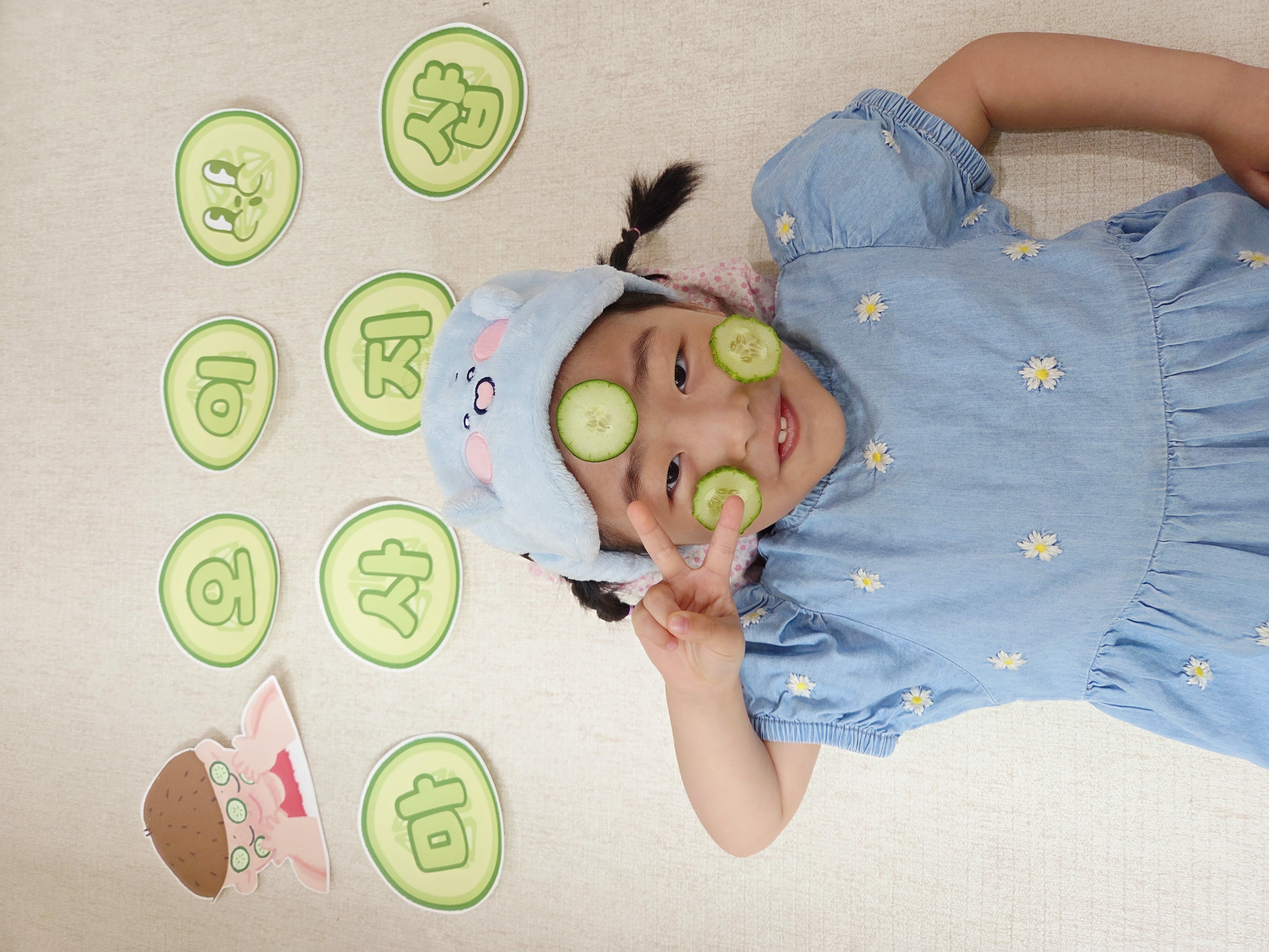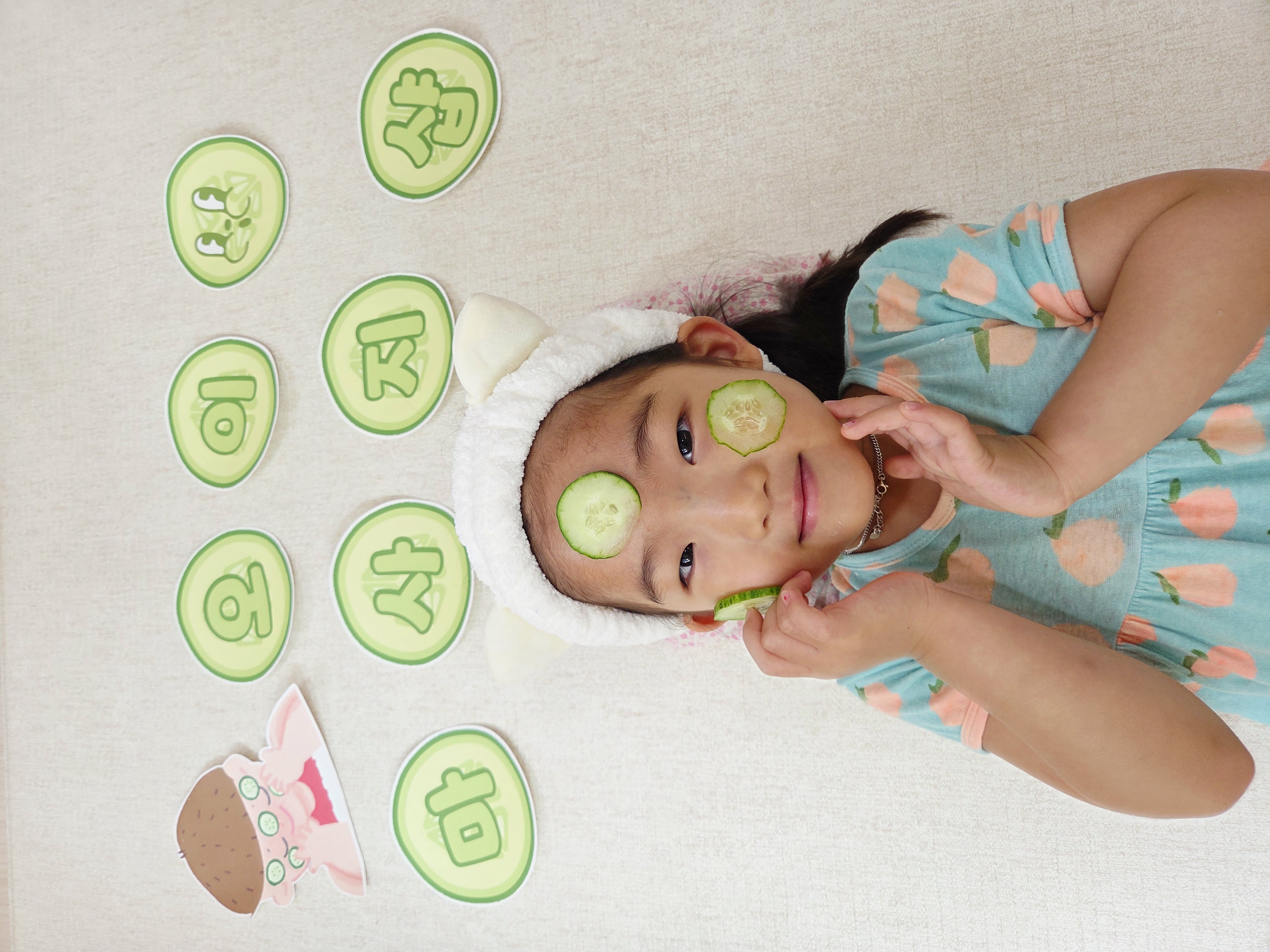 아삭아삭 길쭉하고 날씬한 오이를🥒오감으로 탐색하고 오이& 참치 샌드위치 요리도 하고🥪🌮🌯‘장수탕 선녀님’ 동화를 듣고 상상블록으로 목욕탕 놀이도하고 오이 마사지 놀이도 하며 어느새 피부가 매끈매끈 우유 빛깔로 변신^^친구들과의 사랑도 쑥쑥~*^^*