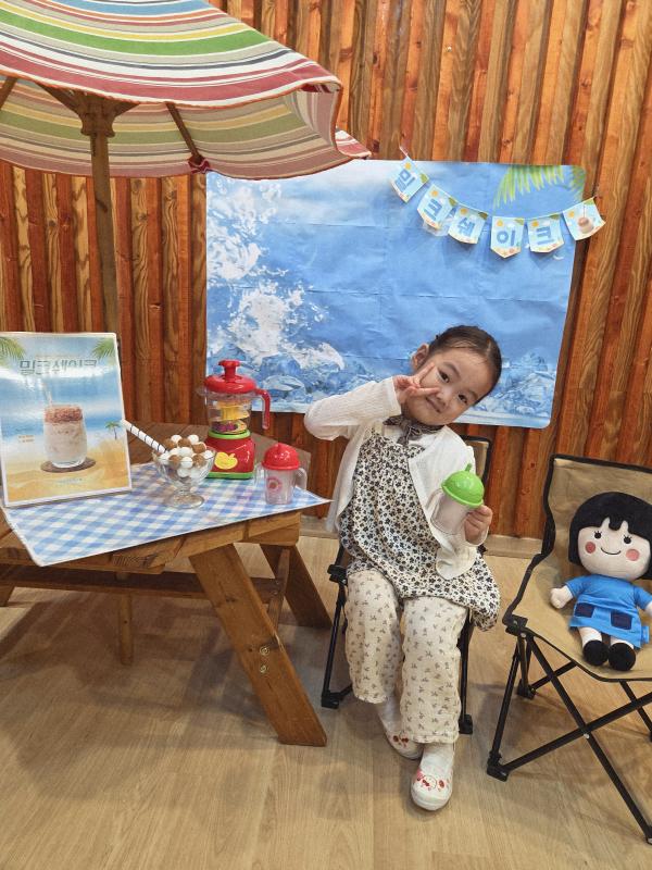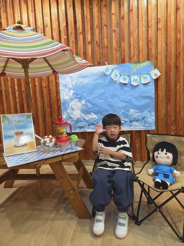 | 무더운 여름 건강하고 시원한 여름을 보내기 위해어떤 간식을 만들어 볼까요??✨✨🍦🥤 오늘의 요리 주인공은 키도 쑥쑥 뼈를 튼튼하게 해주는 우유^^먼저 ‘무지개 우유 실험’으로 표면장력과 계면 활성제의 적용 원리를 신기한 과학 놀이로 경험을 해보고우유를 이용해 ‘조리퐁 밀크쉐이크' 도전*^^*🥛🍨 우유와 바닐라 아이스크림을 믹서기를 돌리면 어느새 달콤시원한 밀크 쉐이크로 변신!! 이제 동글 동글 달콤한 조리퐁을 솔솔 뿌려 주면 조리퐁 밀크쉐이크 완성!!! 그럼 바닷가 풍경이 그려진예쁜 까페에서 사진도 찰칵!!🏝️🏝️🏝️ |
