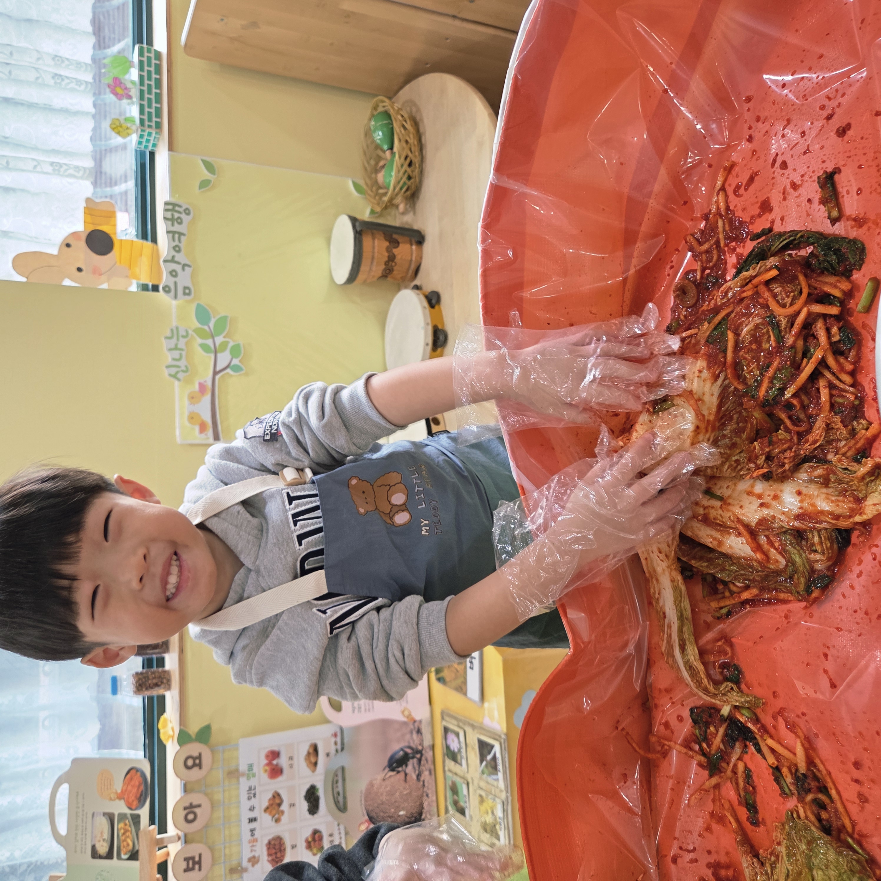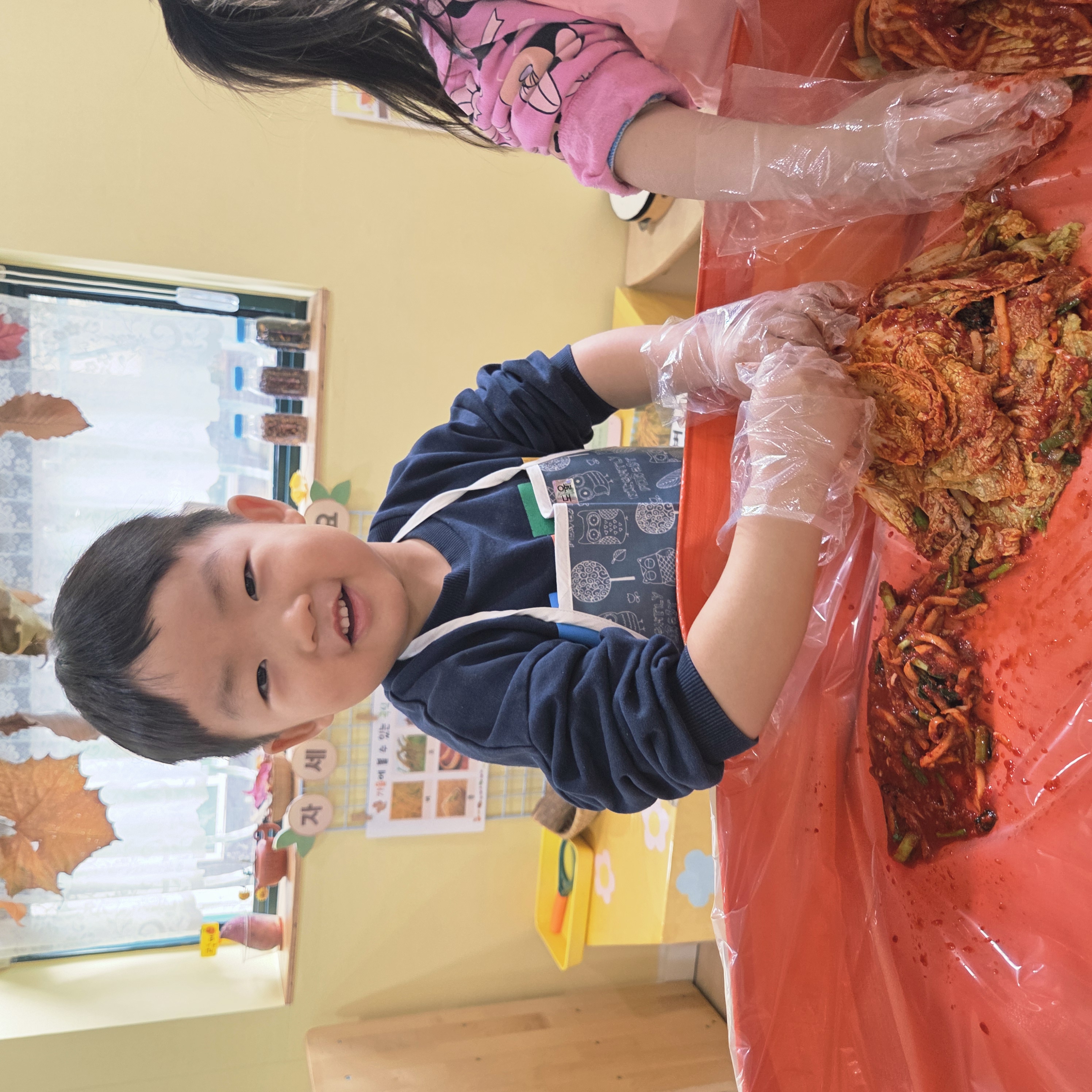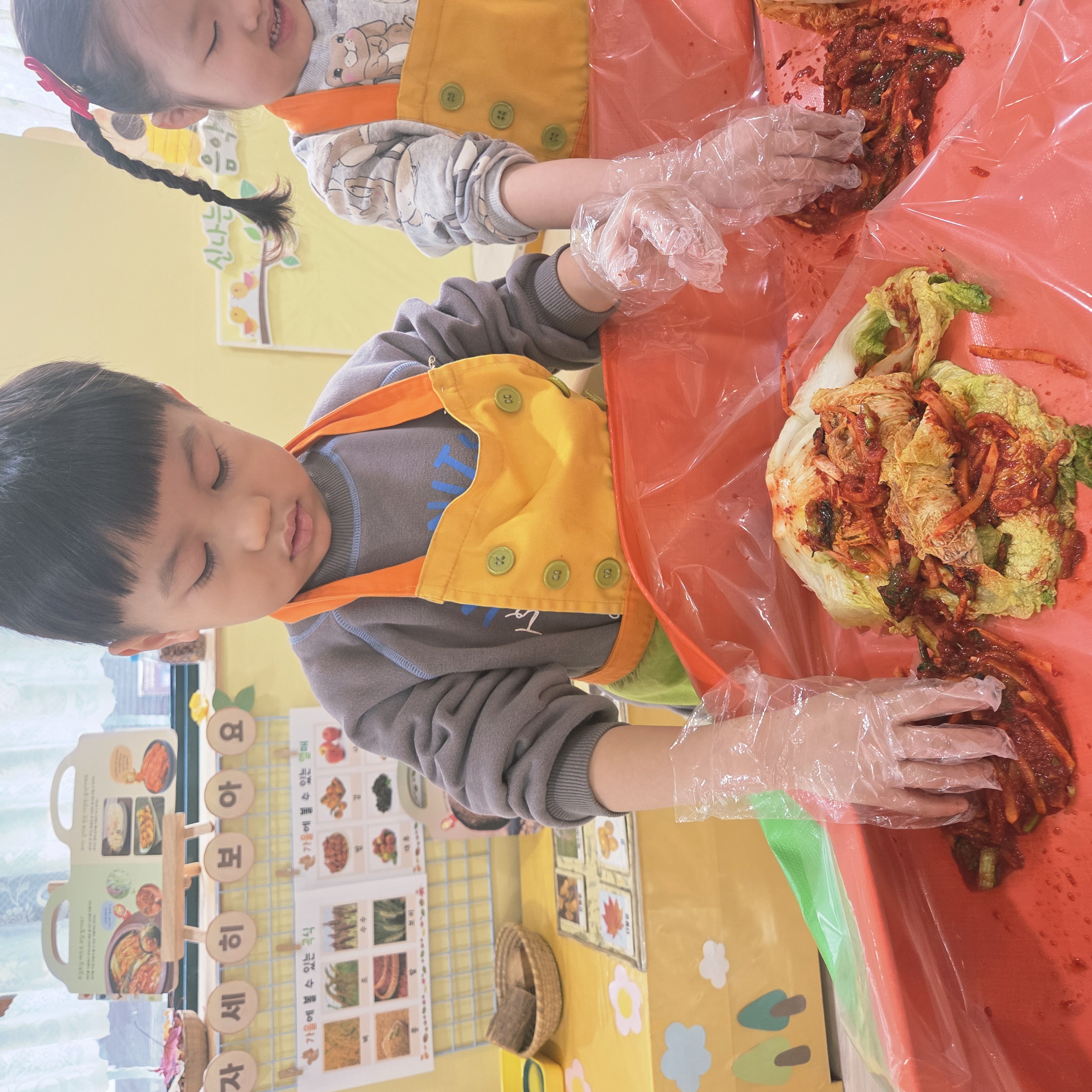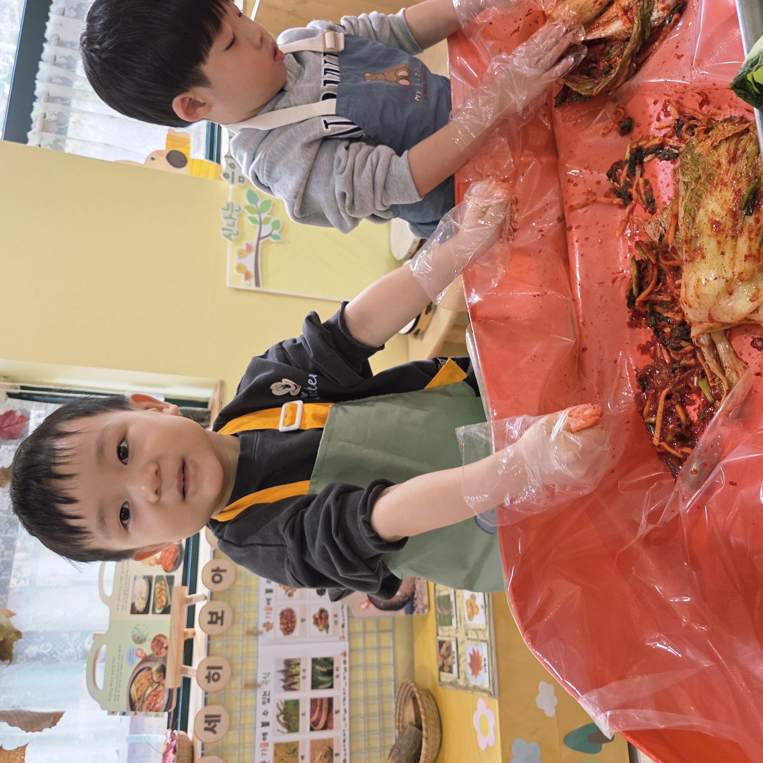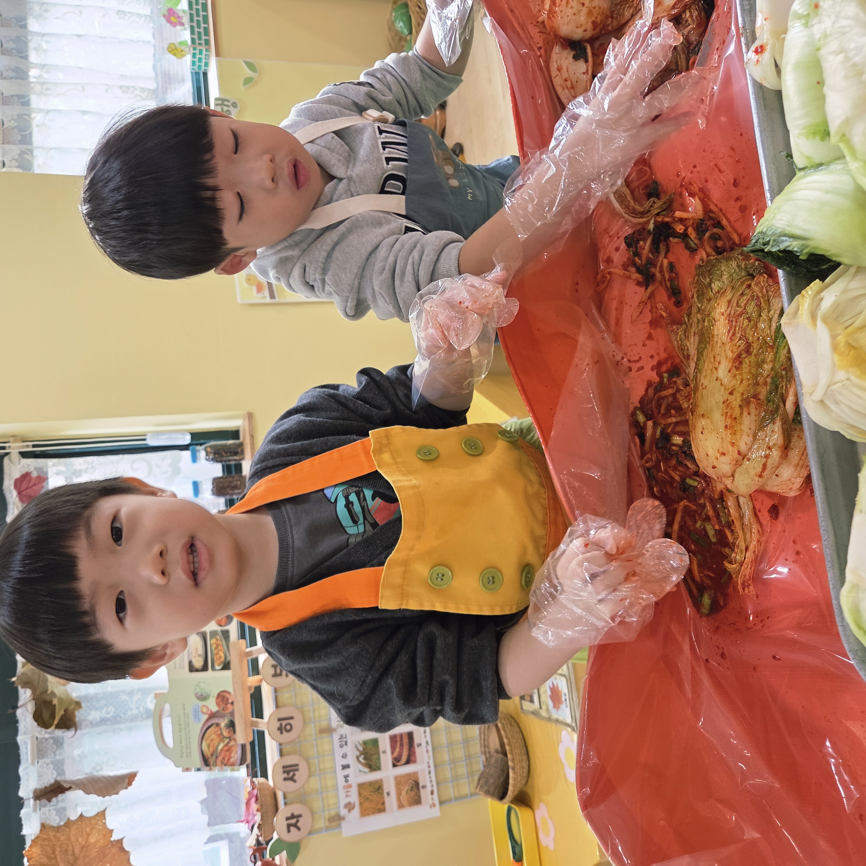 추운 겨울이 오기 전 다함께 도란도란 모여 겨울동안 먹을 수 있는 김장을 하며 따뜻한 마음을 나누는 축제의 날❄️☃️ 고사리 같은 귀여운 손으로 배춧잎을 마치 책장 넘기듯이 배추소를 쏘오옥 넣으며엄마 아빠가 된 든 정성껏 김장 담그는 모습에진지함이 느껴졌답니다. 평소 김치가 매워서 먹기 어려워했던 친구들도오늘은 용기를 내어 우리가 담근 김장 김치를 맛보며“맛있어요, 더 주세요” 하며 활짝 웃는 모습에 사랑스러움이 뿜뿜*^^*🌶️🧅🧄