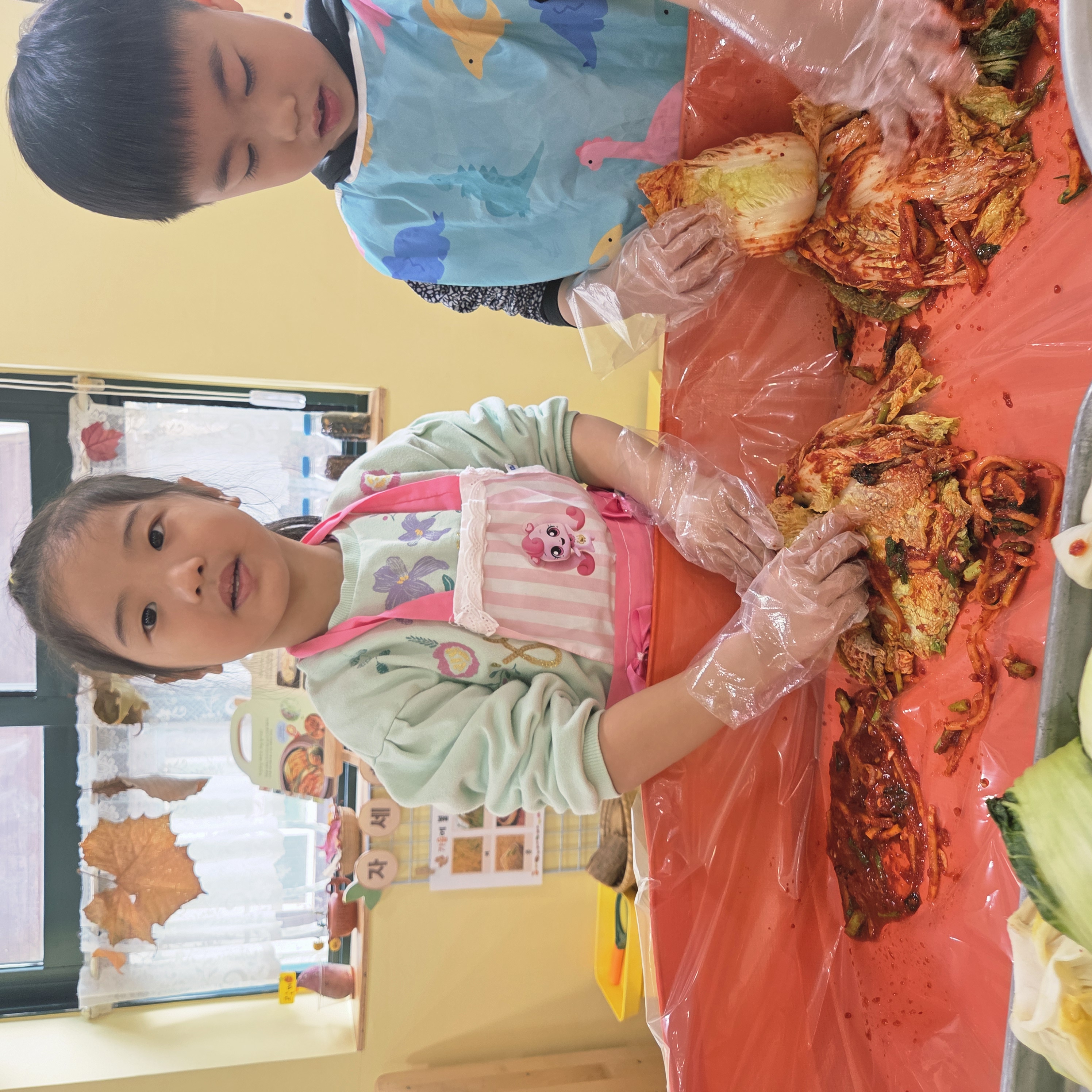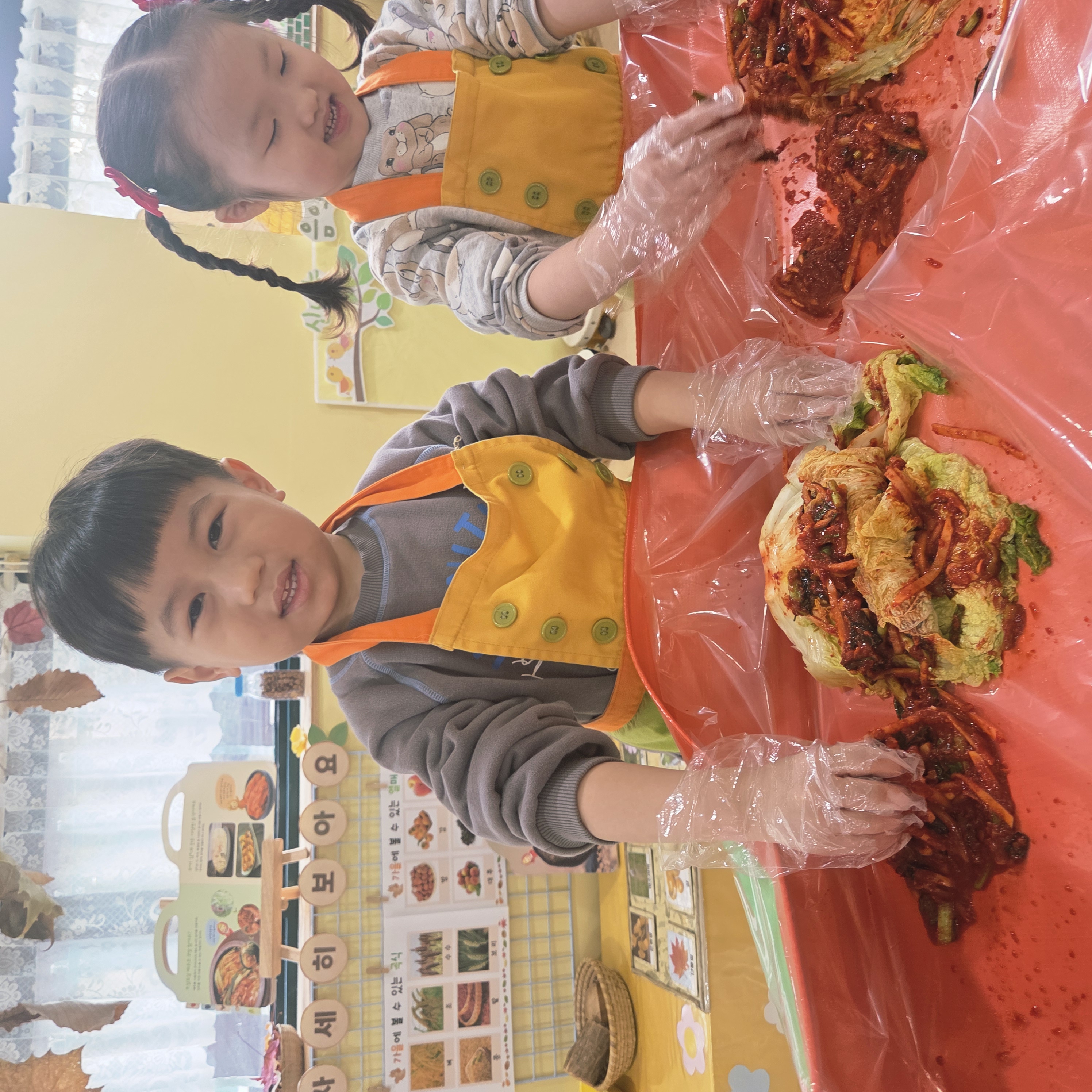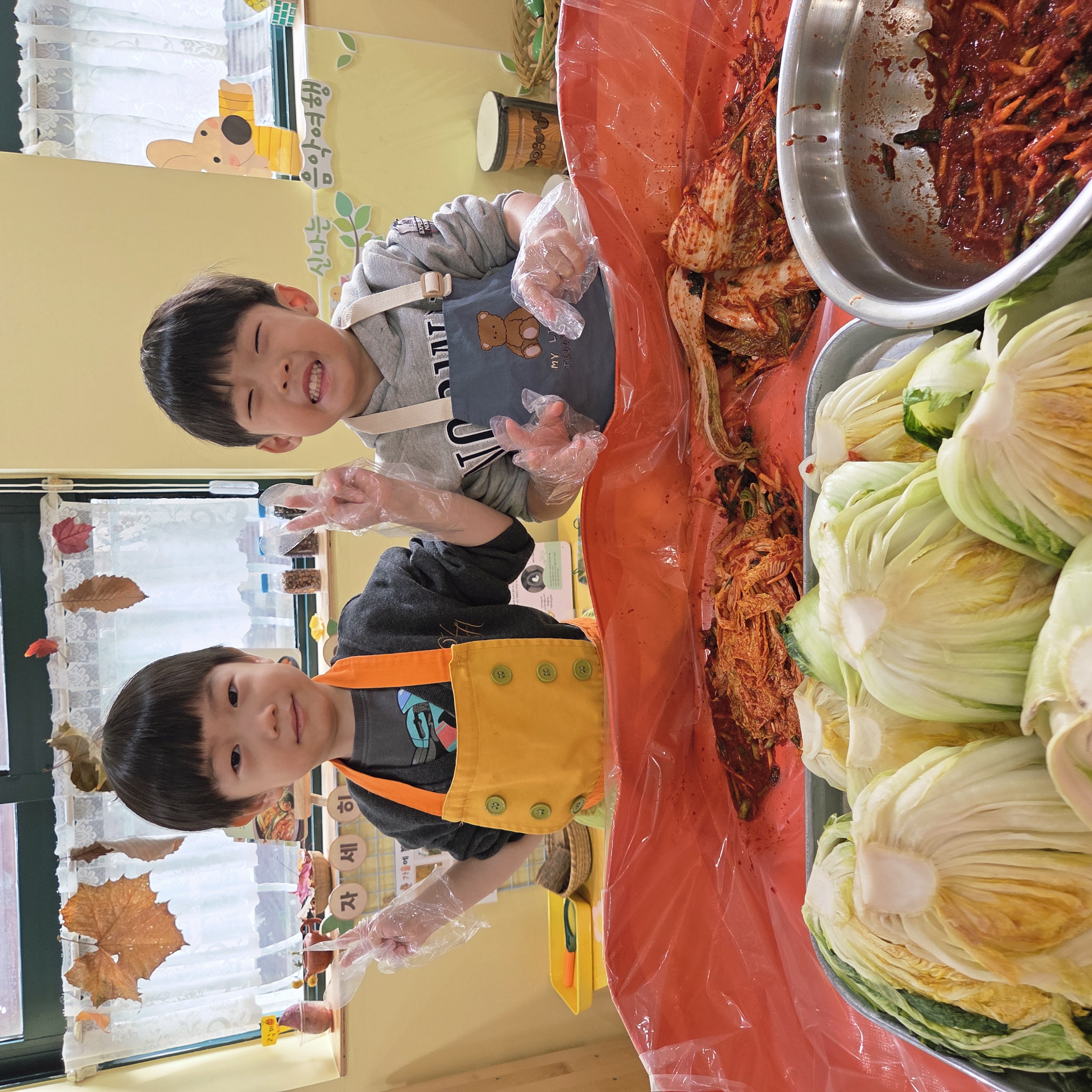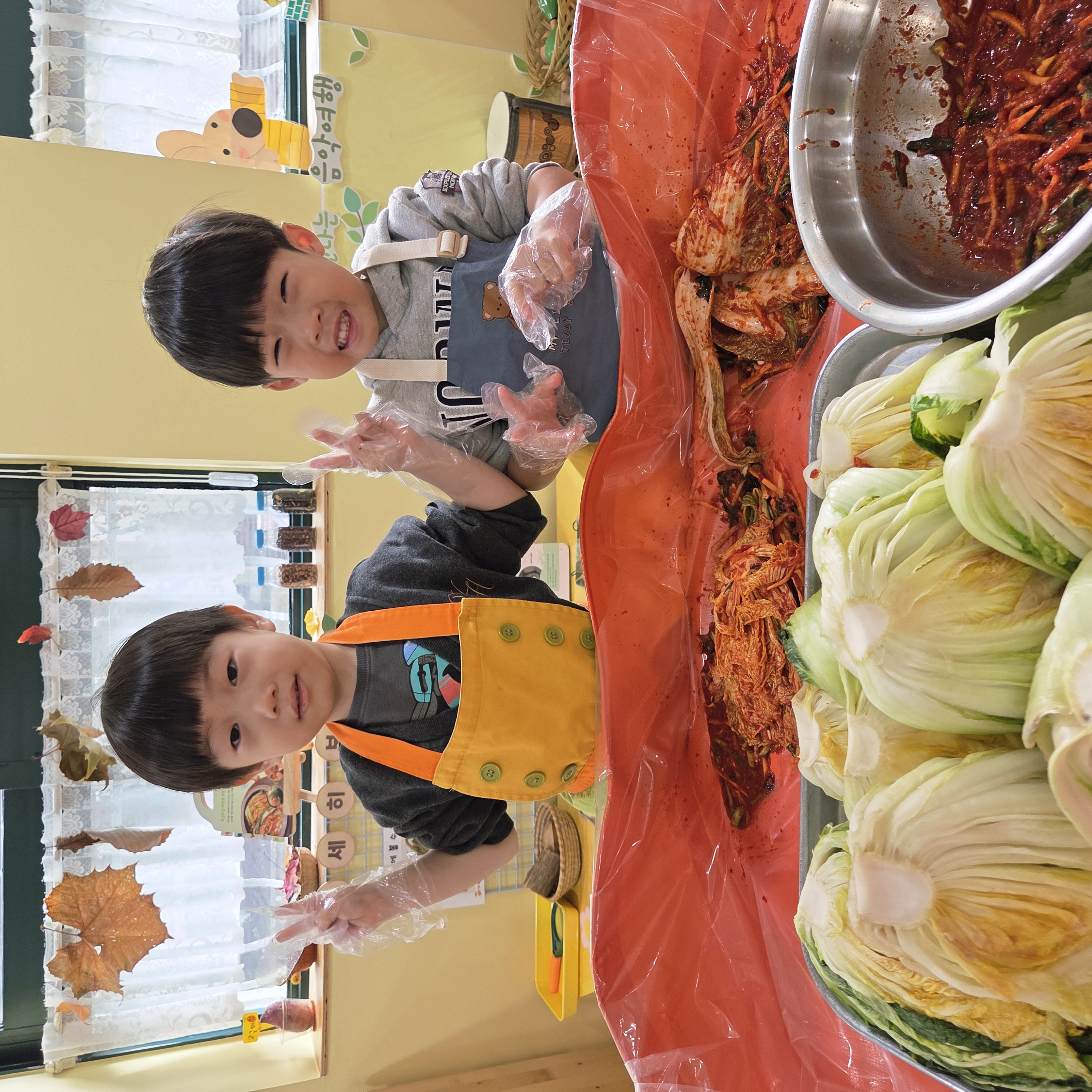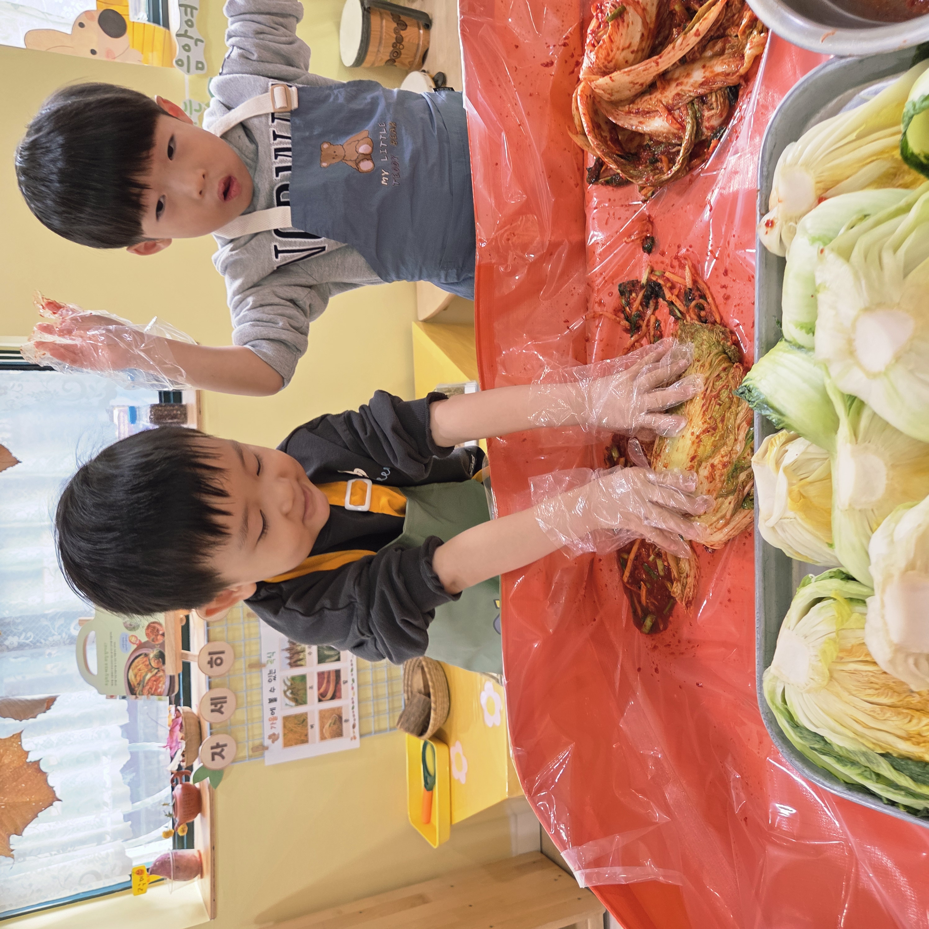 추운 겨울이 오기 전 다함께 도란도란 모여 겨울동안 먹을 수 있는 김장을 하며 따뜻한 마음을 나누는 축제의 날❄️☃️ 고사리 같은 귀여운 손으로 배춧잎을 마치 책장 넘기듯이 배추소를 쏘오옥 넣으며엄마 아빠가 된 든 정성껏 김장 담그는 모습에진지함이 느껴졌답니다. 평소 김치가 매워서 먹기 어려워했던 친구들도오늘은 용기를 내어 우리가 담근 김장 김치를 맛보며“맛있어요, 더 주세요” 하며 활짝 웃는 모습에 사랑스러움이 뿜뿜*^^*🌶️🧅🧄