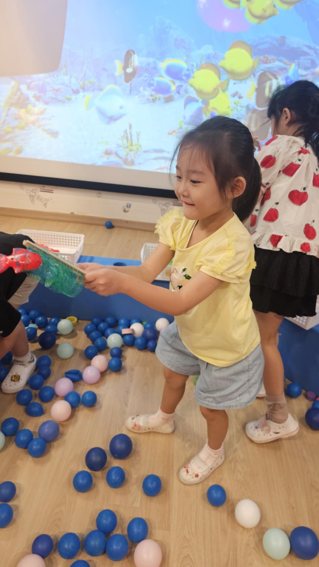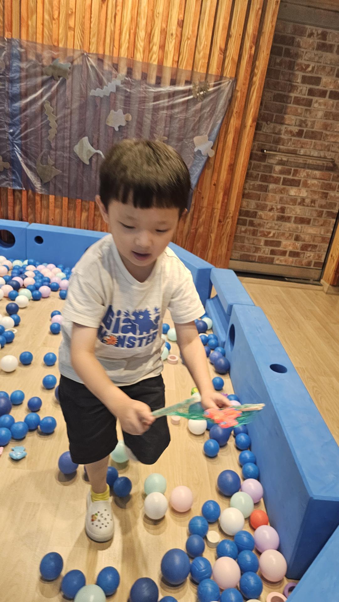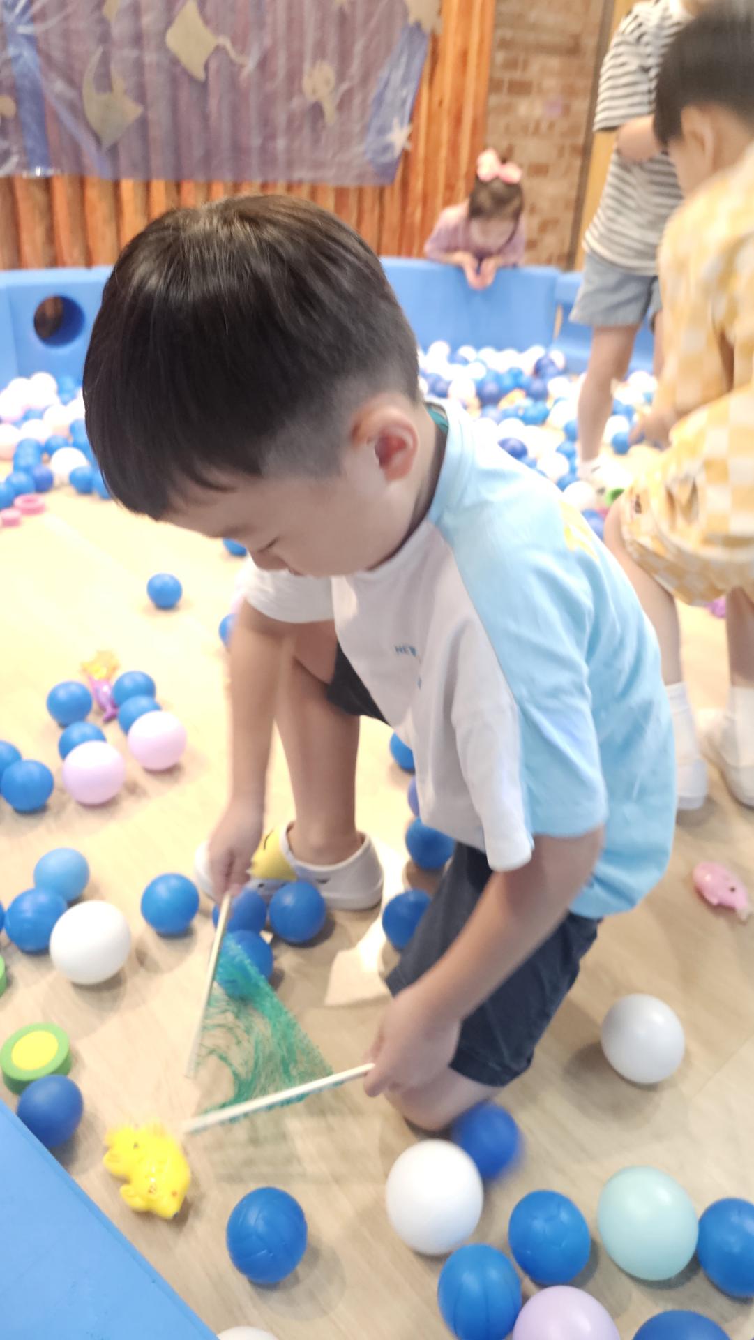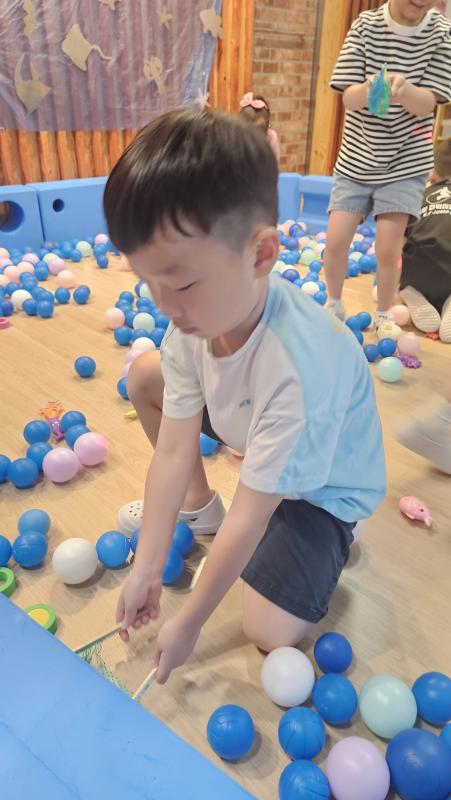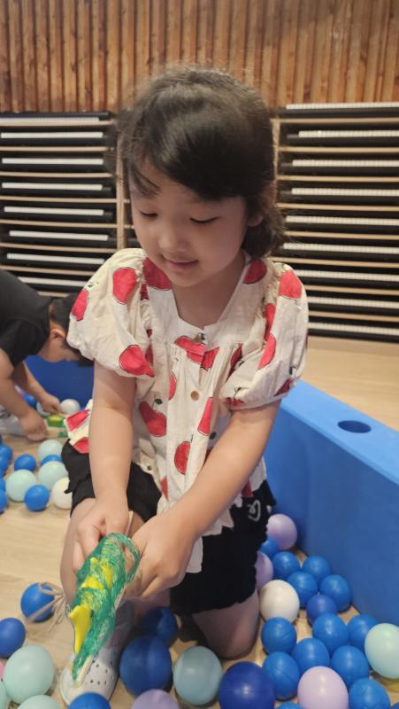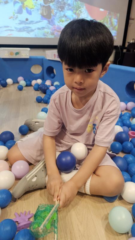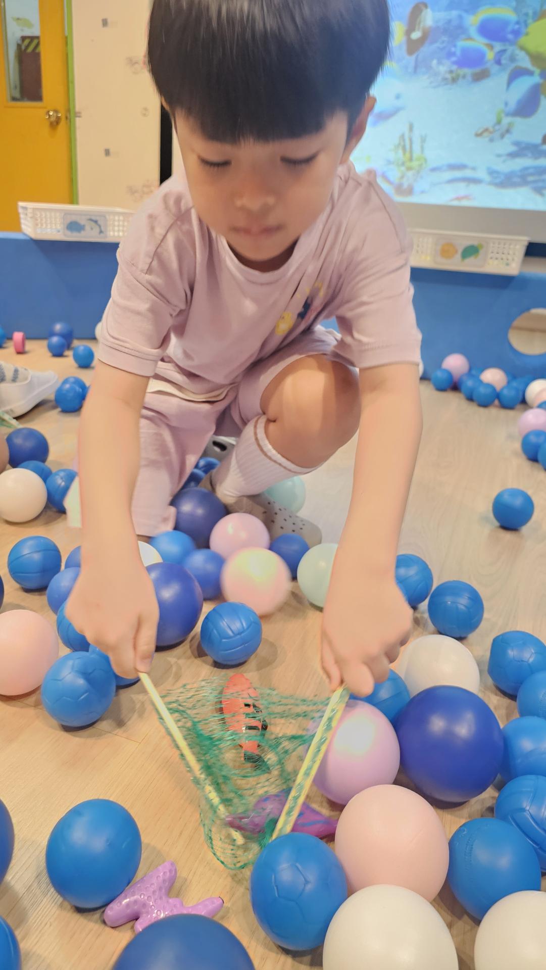 오늘은 교실이 멋진 아쿠아리움으로 변신했어요 🐠낚시 그물로 물고기를 잡고, 볼풀공을 시원한 물로 상상하며 물장구도 치며 신나게 놀았답니다. 🌊친구와 누가 더빨리 잡나 시합도 하고 시원한 하루를 보냈어요