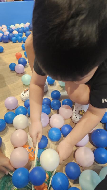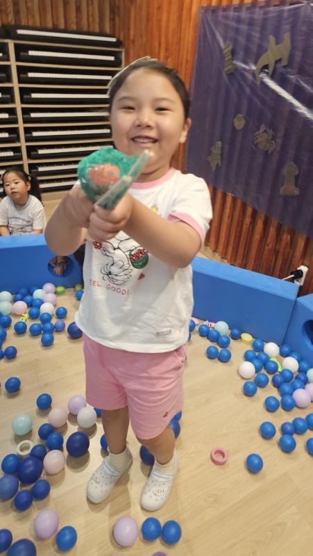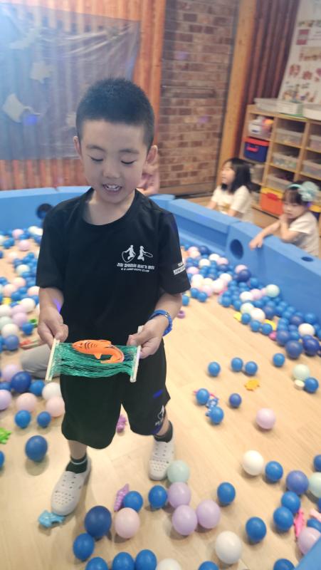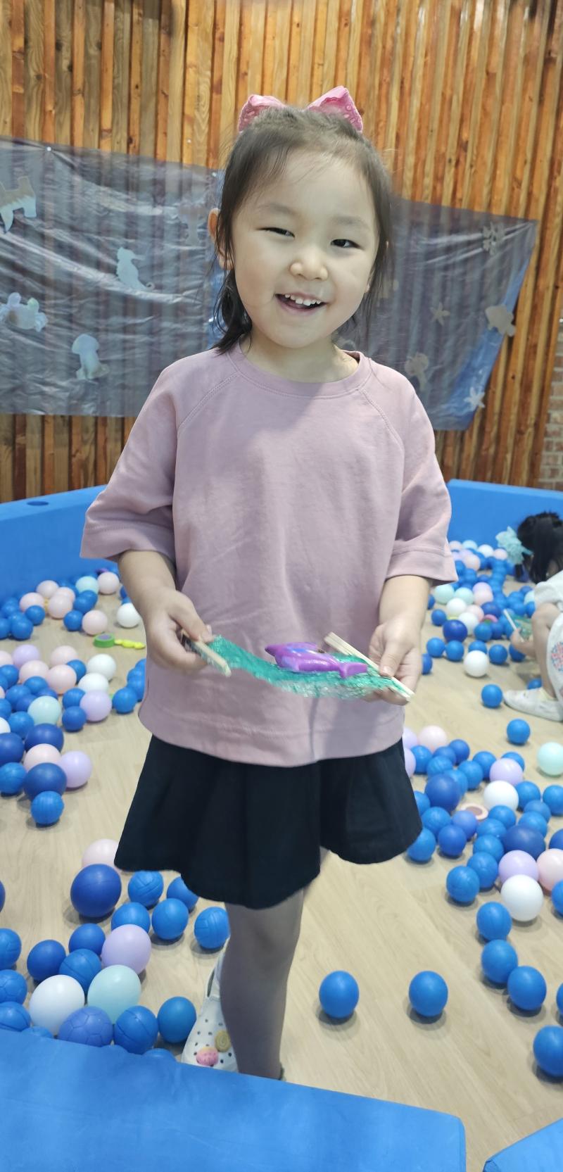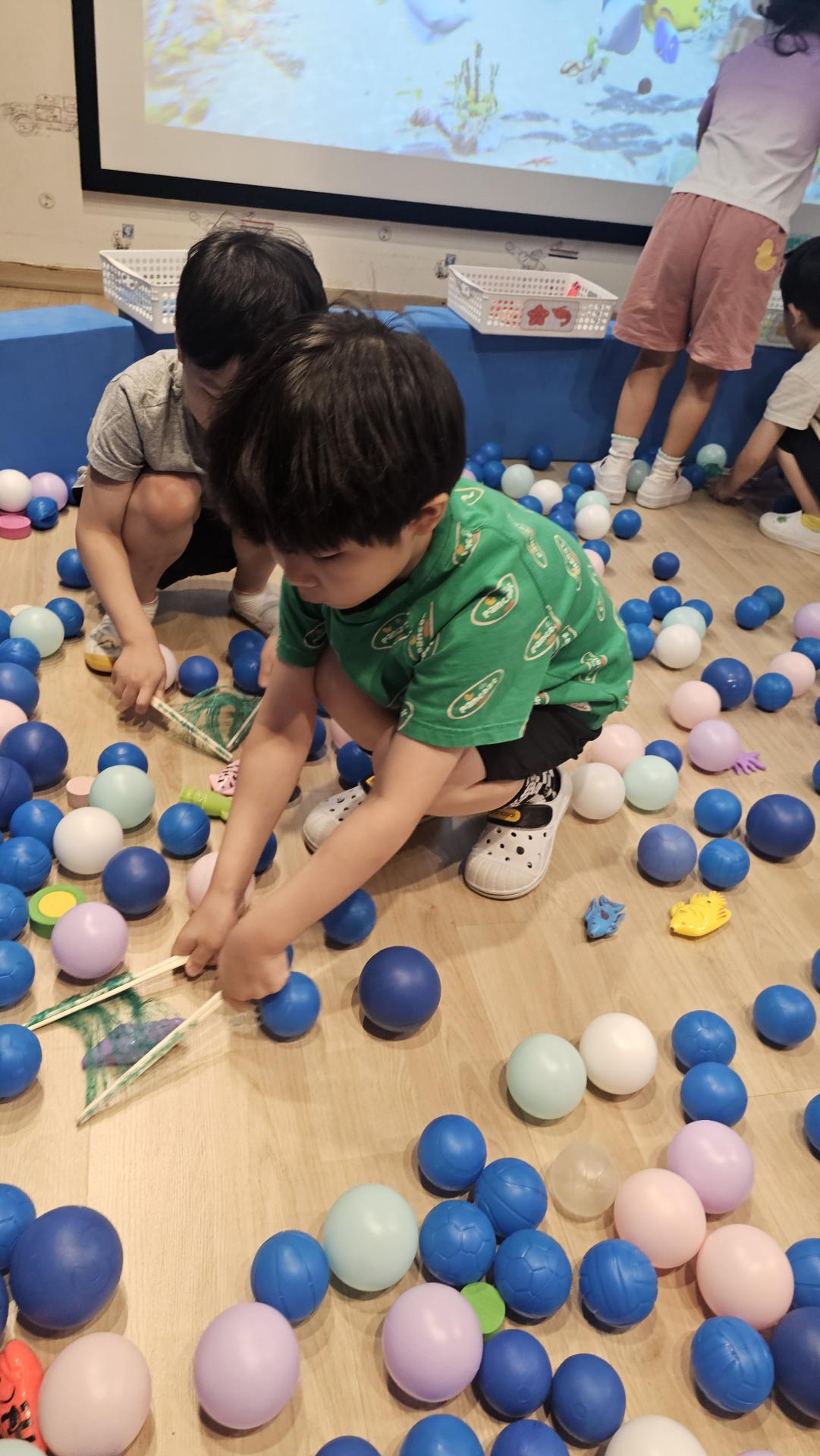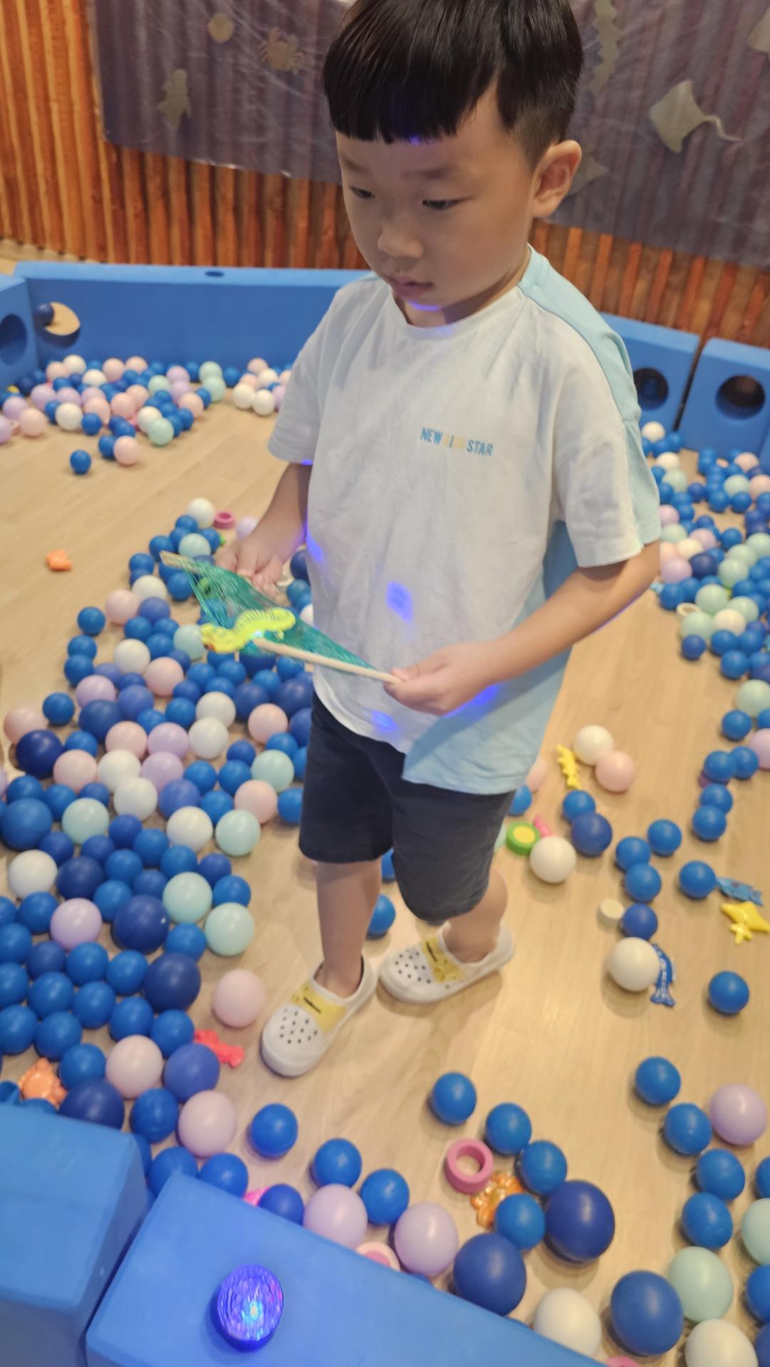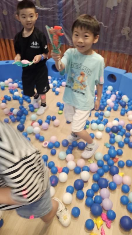 오늘은 교실이 멋진 아쿠아리움으로 변신했어요 🐠낚시 그물로 물고기를 잡고, 볼풀공을 시원한 물로 상상하며 물장구도 치며 신나게 놀았답니다. 🌊친구와 누가 더빨리 잡나 시합도 하고 시원한 하루를 보냈어요