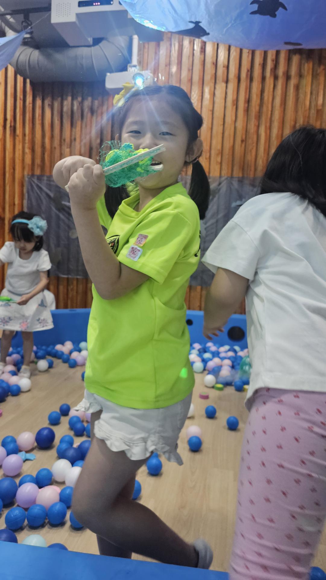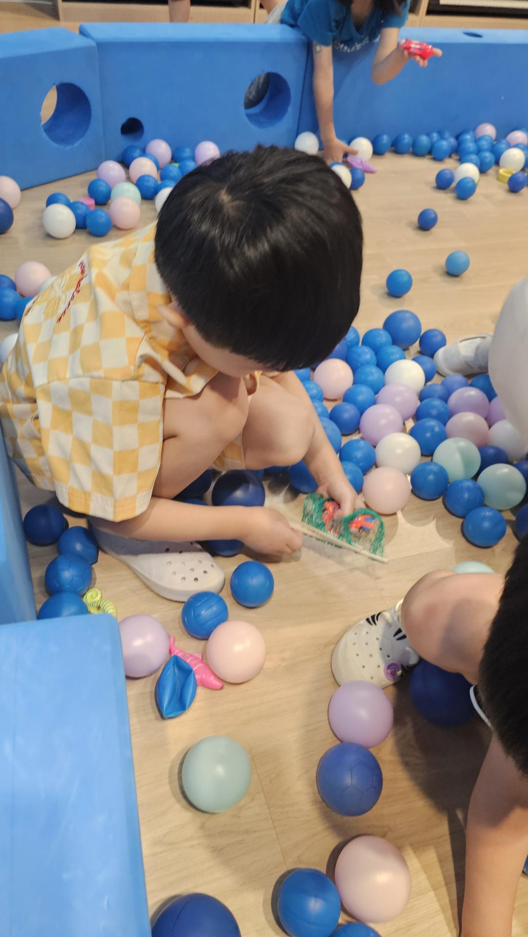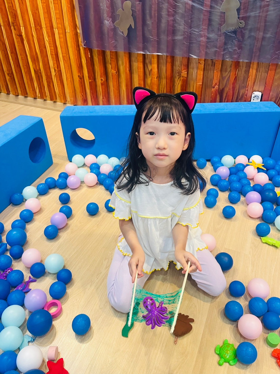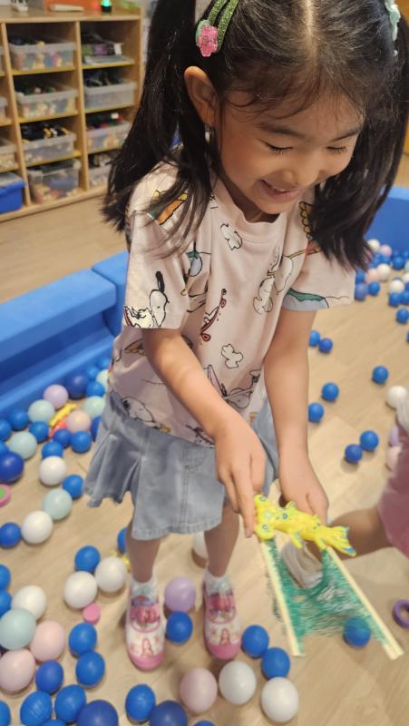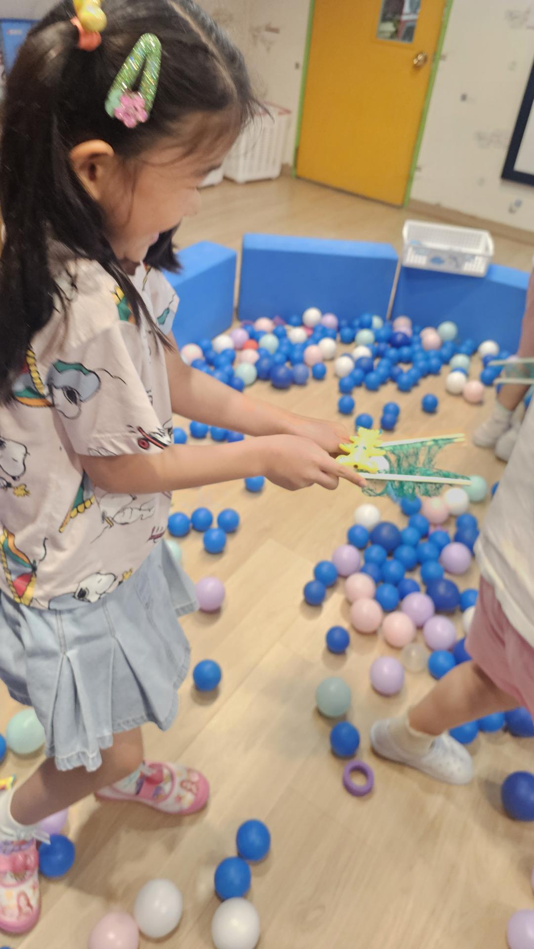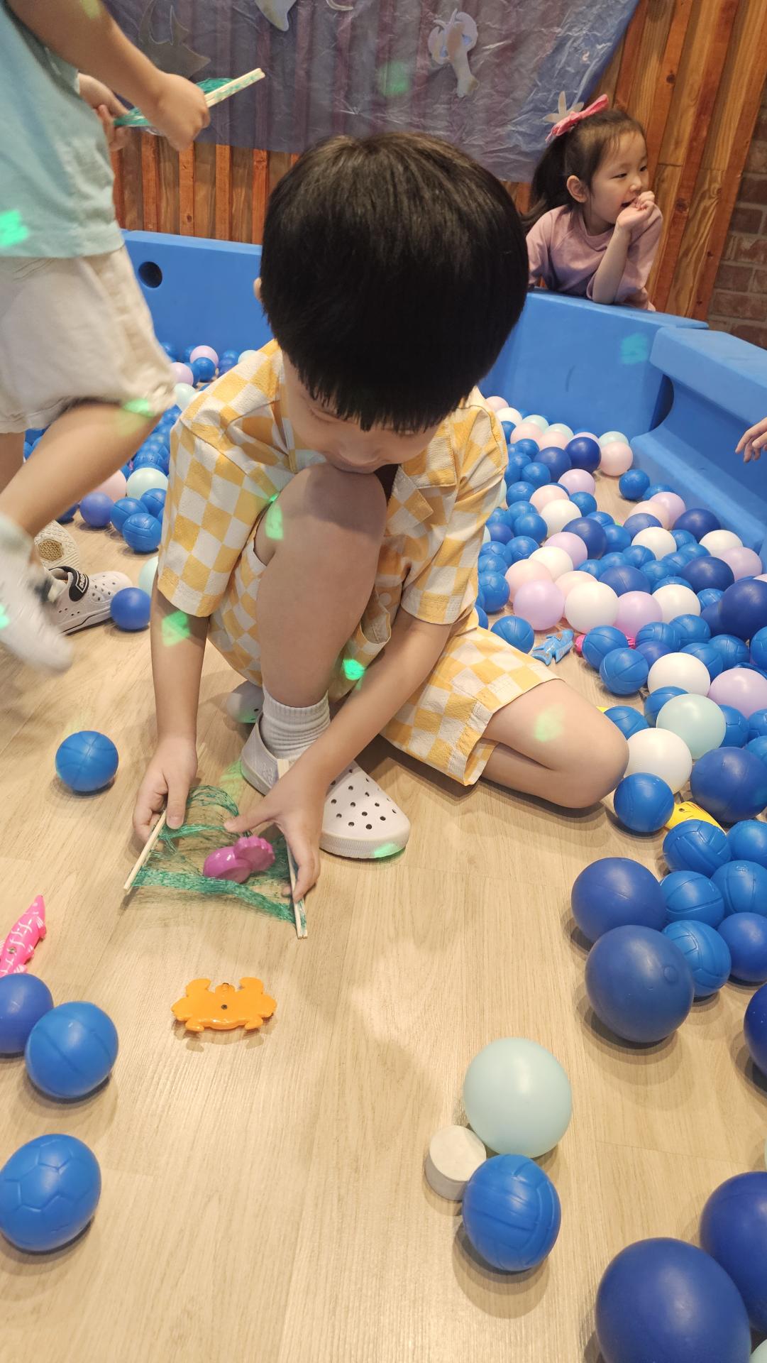 오늘은 교실이 멋진 아쿠아리움으로 변신했어요 🐠낚시 그물로 물고기를 잡고, 볼풀공을 시원한 물로 상상하며 물장구도 치며 신나게 놀았답니다. 🌊친구와 누가 더빨리 잡나 시합도 하고 시원한 하루를 보냈어요