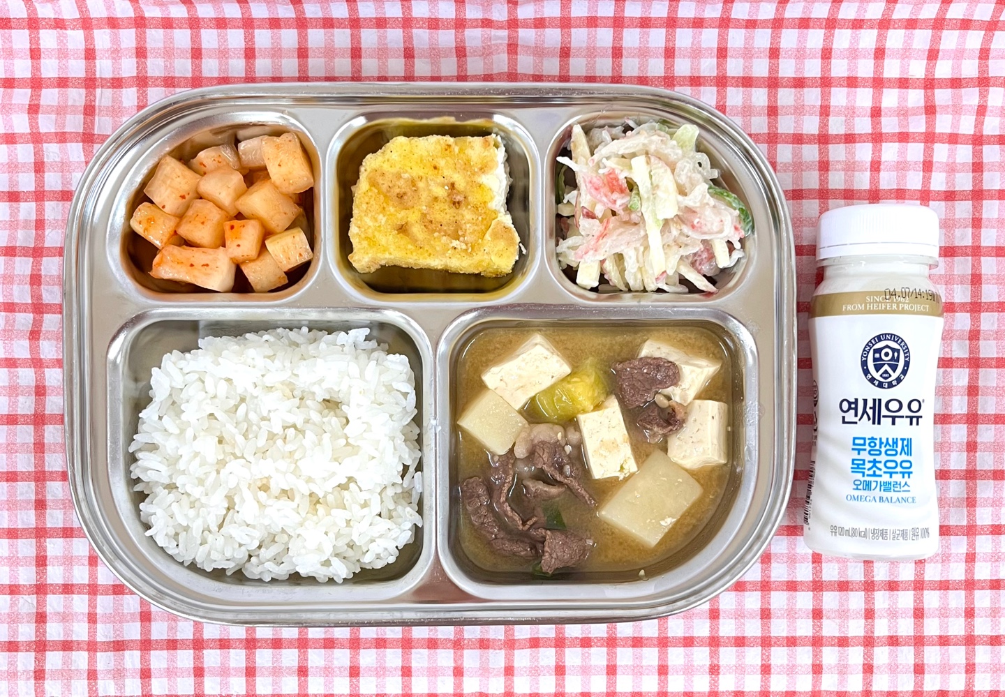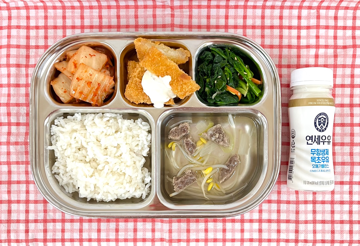 백미밥 소고기콩나물무국 생선까스+타르 시금치나물 포기김치 우유 002191250288 오후간식밤만쥬 감귤쥬스 | 4 | |||