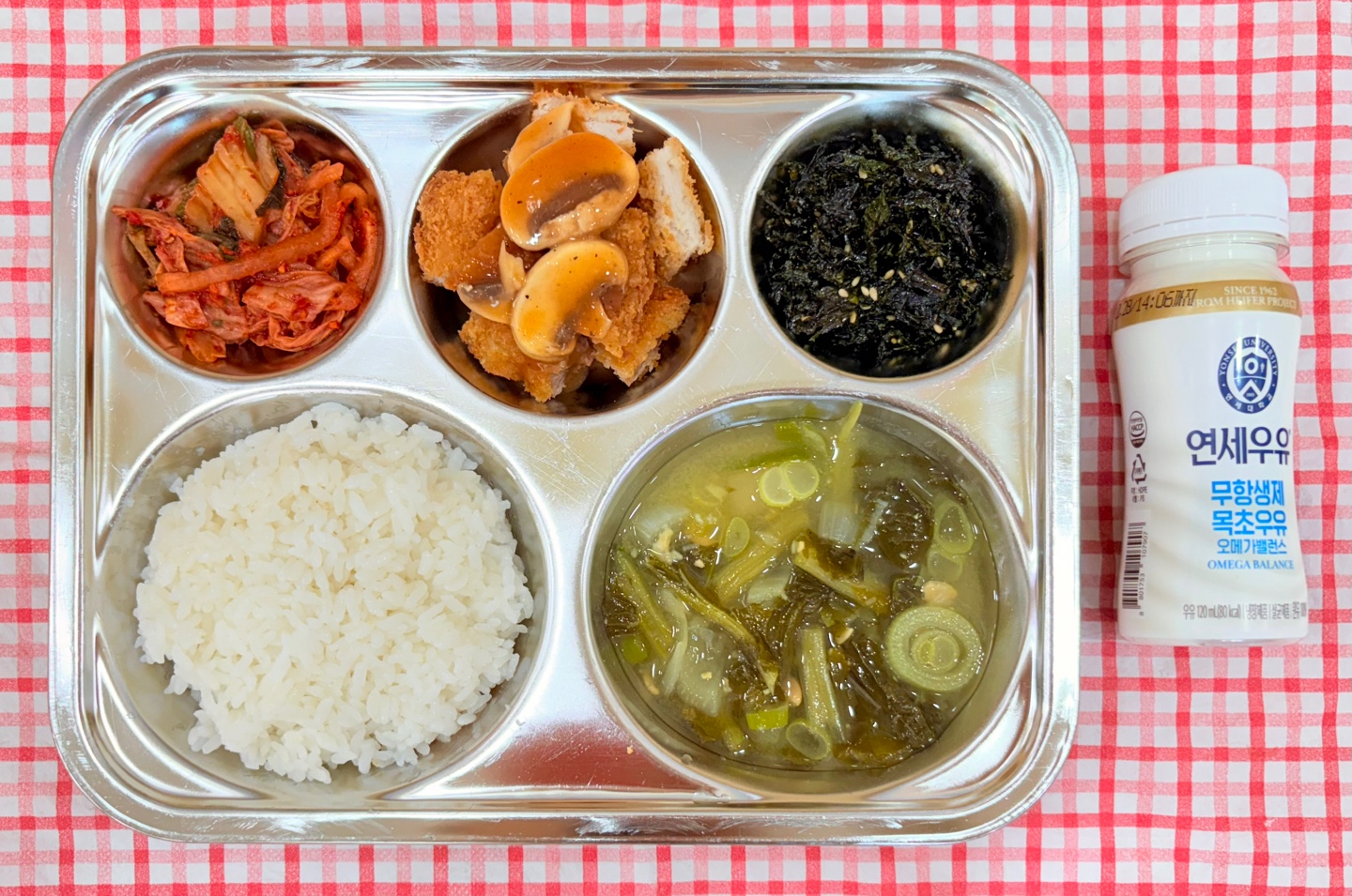 차조밥 맑은콩나물국 안동찜닭 연근조림 백김치 우유 오후간식치즈스틱 요구르트 | 17 점심