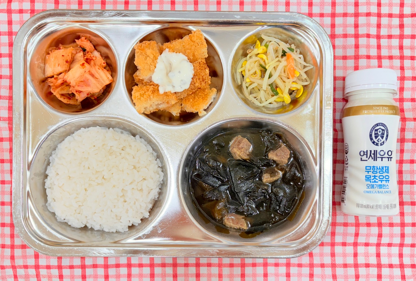 백미밥 소고기미역국 생선까스+타르 콩나물무침 포기김치 우유 002184800234 오후간식보리강정 오렌지쥬스 | 25 |
