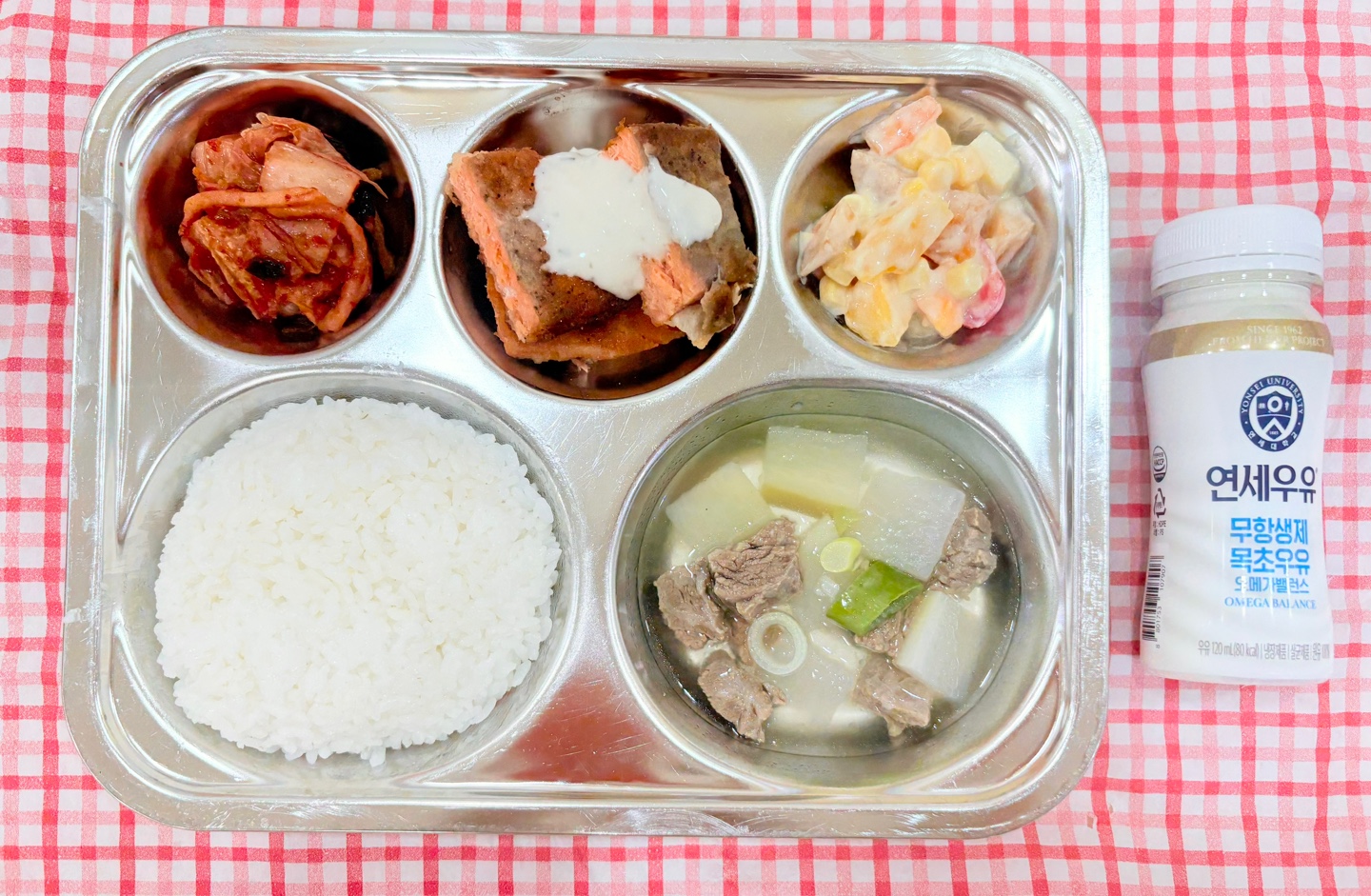 백미밥 소고기무국 순살연어+타르 과일샐러드 포기김치 우유 002186810426 오후간식찐고구마 감귤쥬스 | 27 |